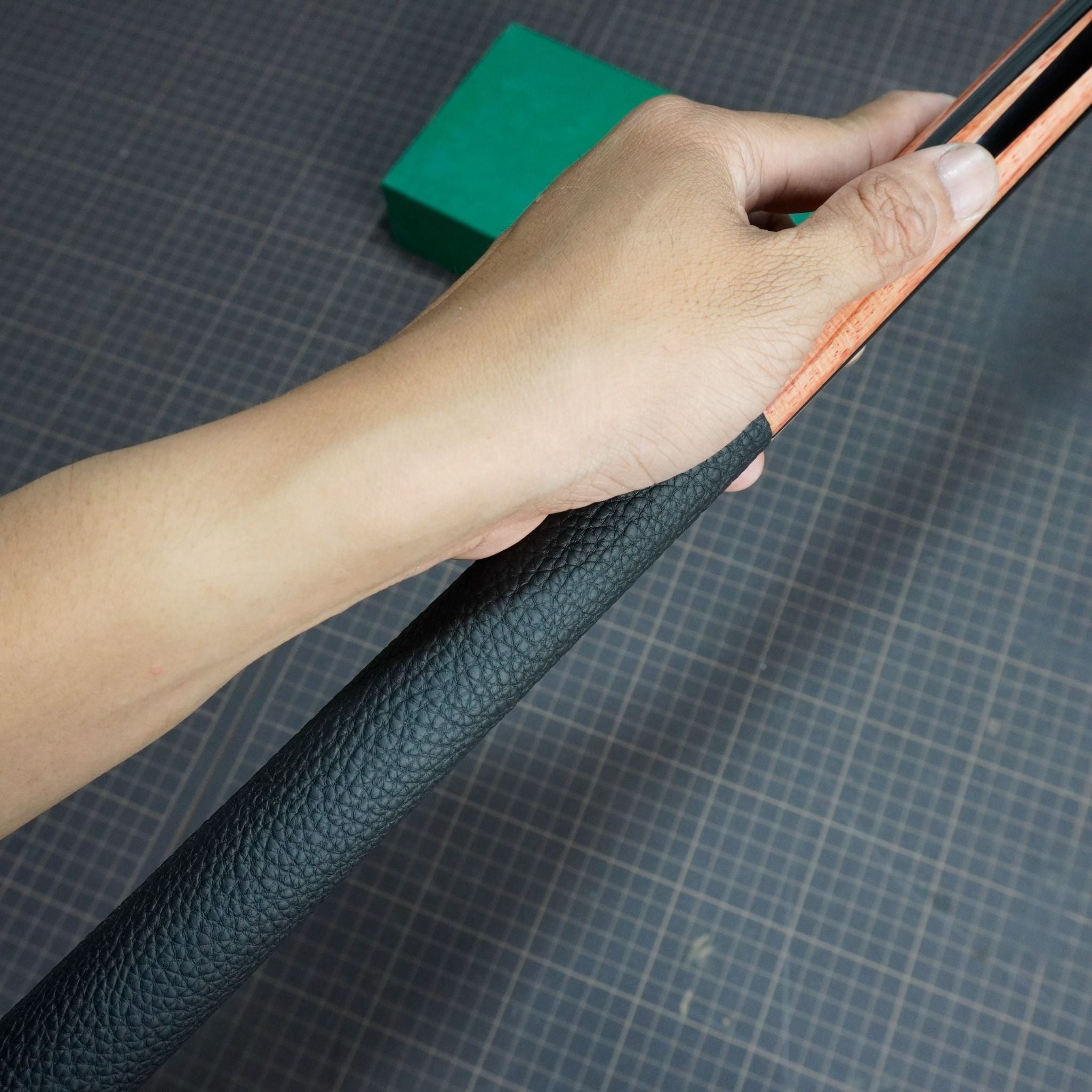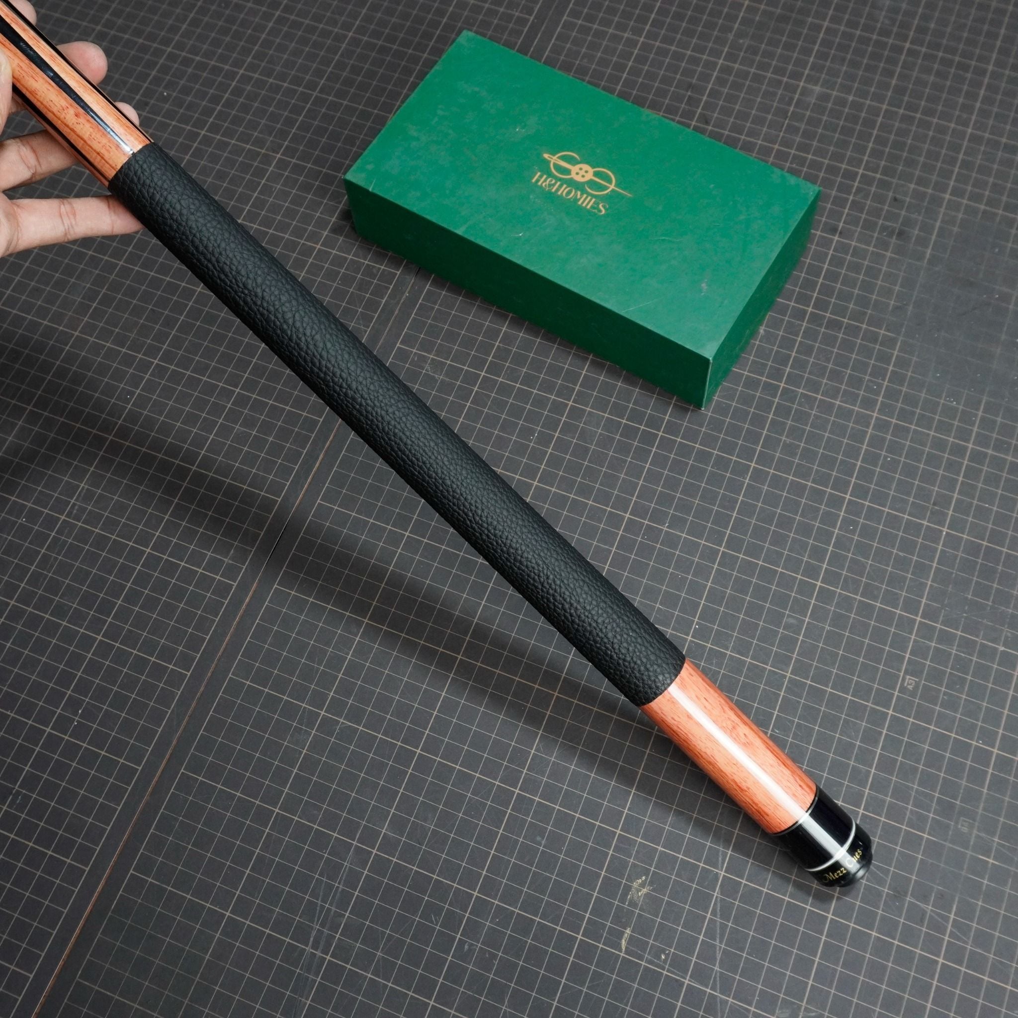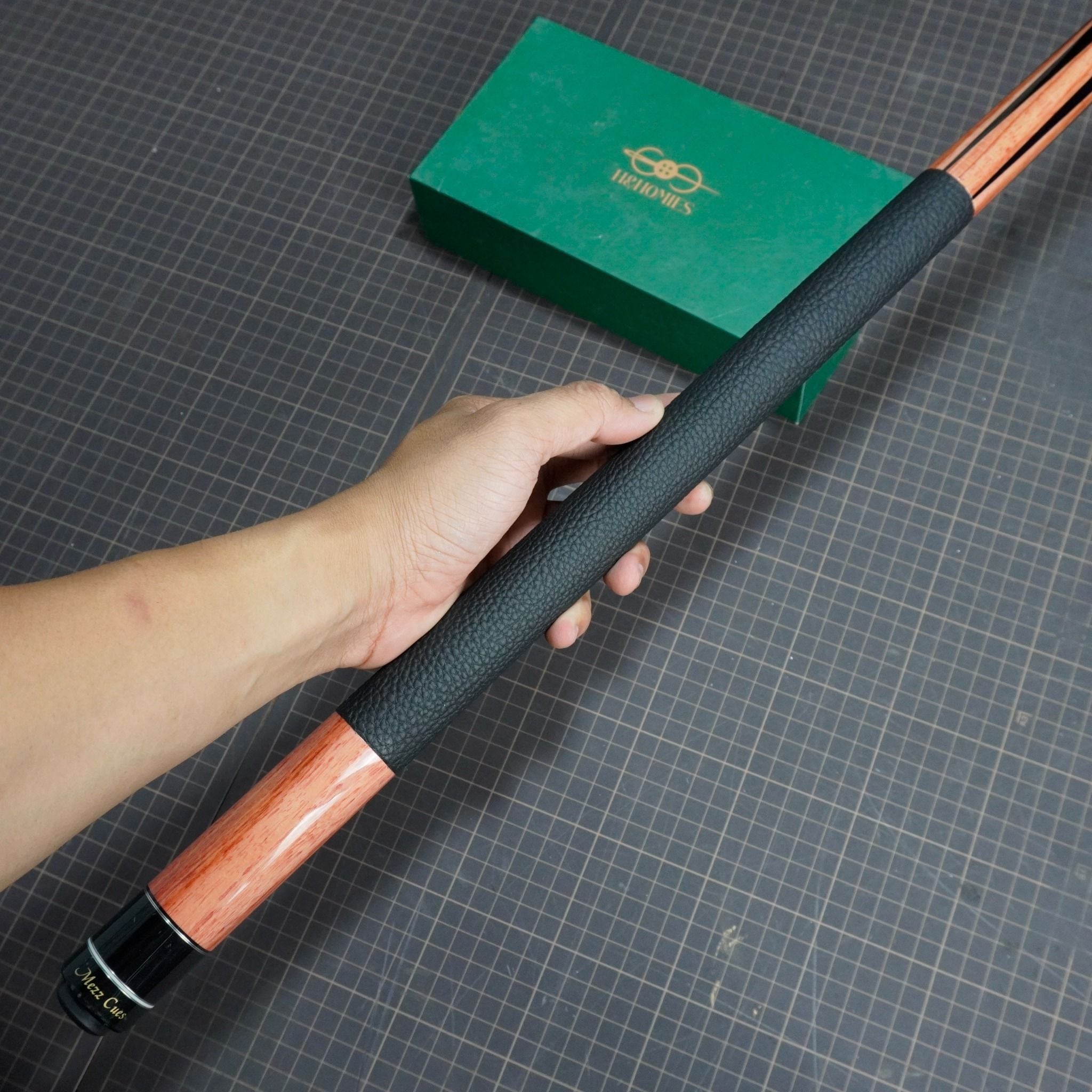 Bọc cơ bida da bò togo cho chuôi Mezz Cues màu nâu gỗ, với chất gia có độ mềm mịn, dẻo dai, đường vân rõ nét và có độ đàn hồi cao