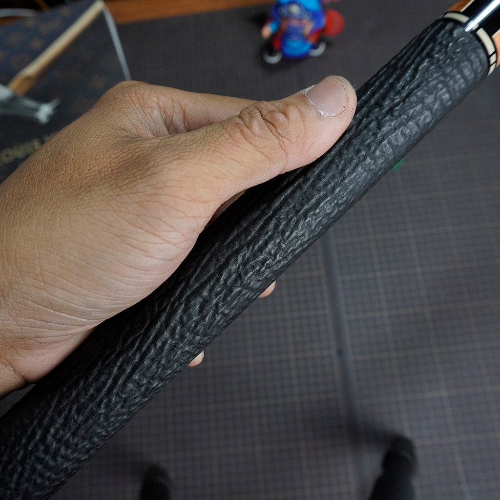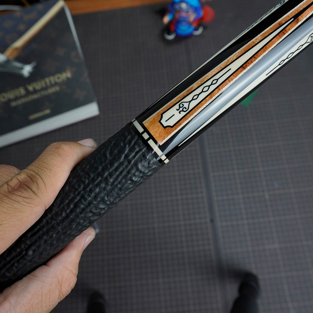 Bọc cơ da cá mập màu đen cho chuôi Howcue với chất da sát thủ đại dương đen huyền bí và sang trọng