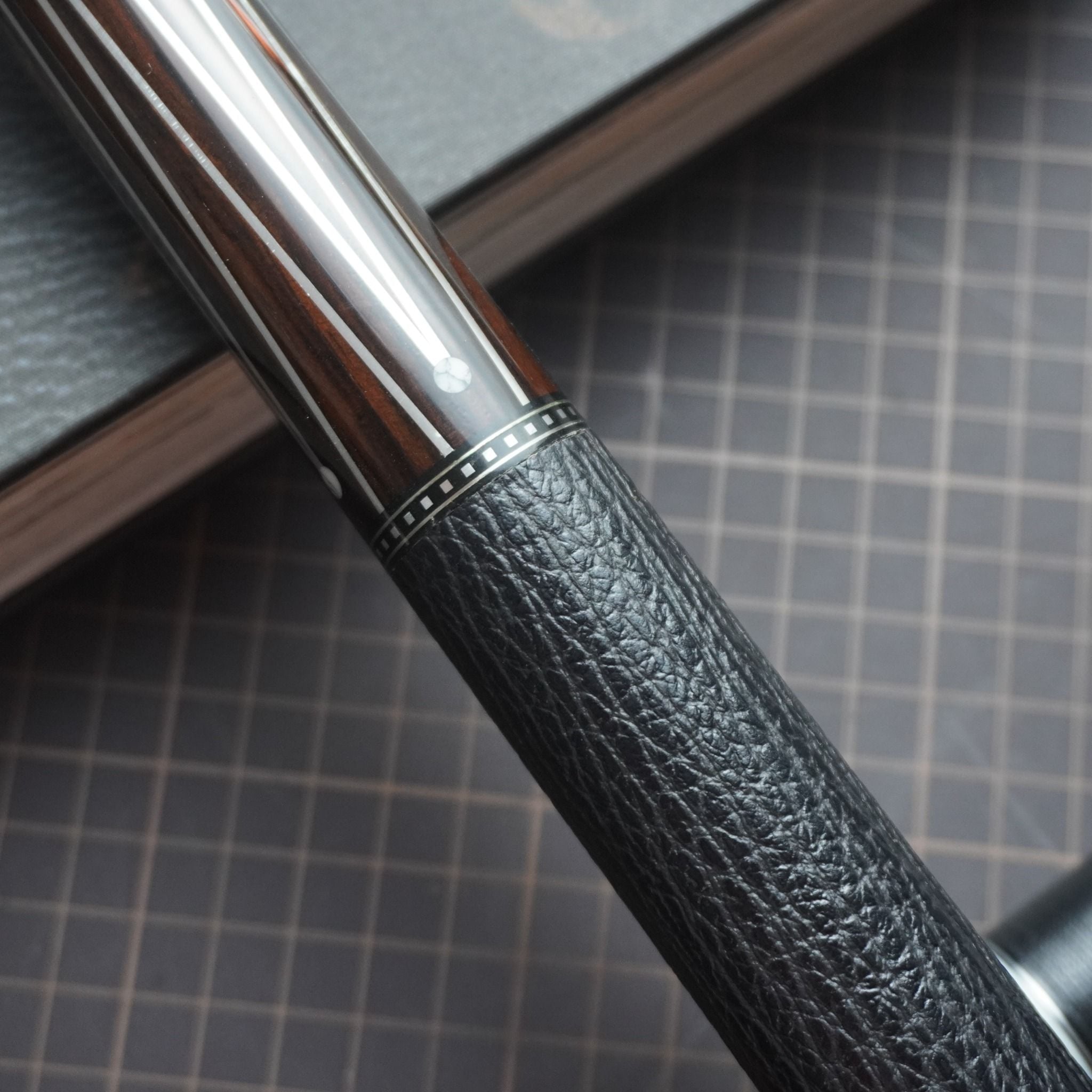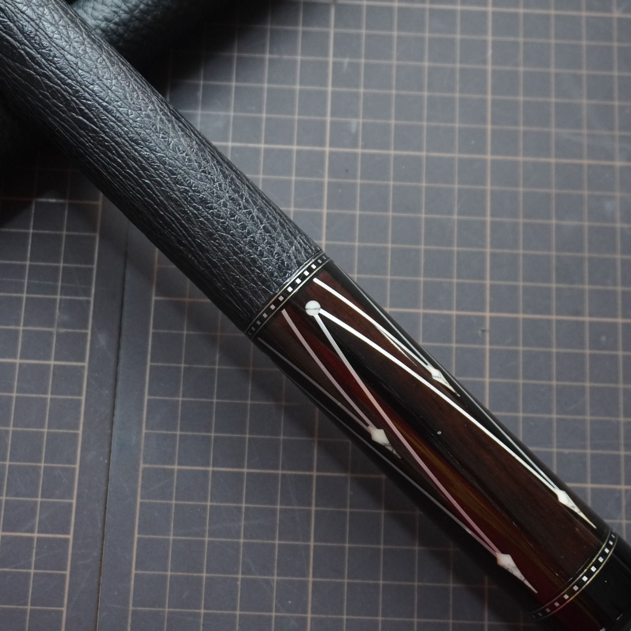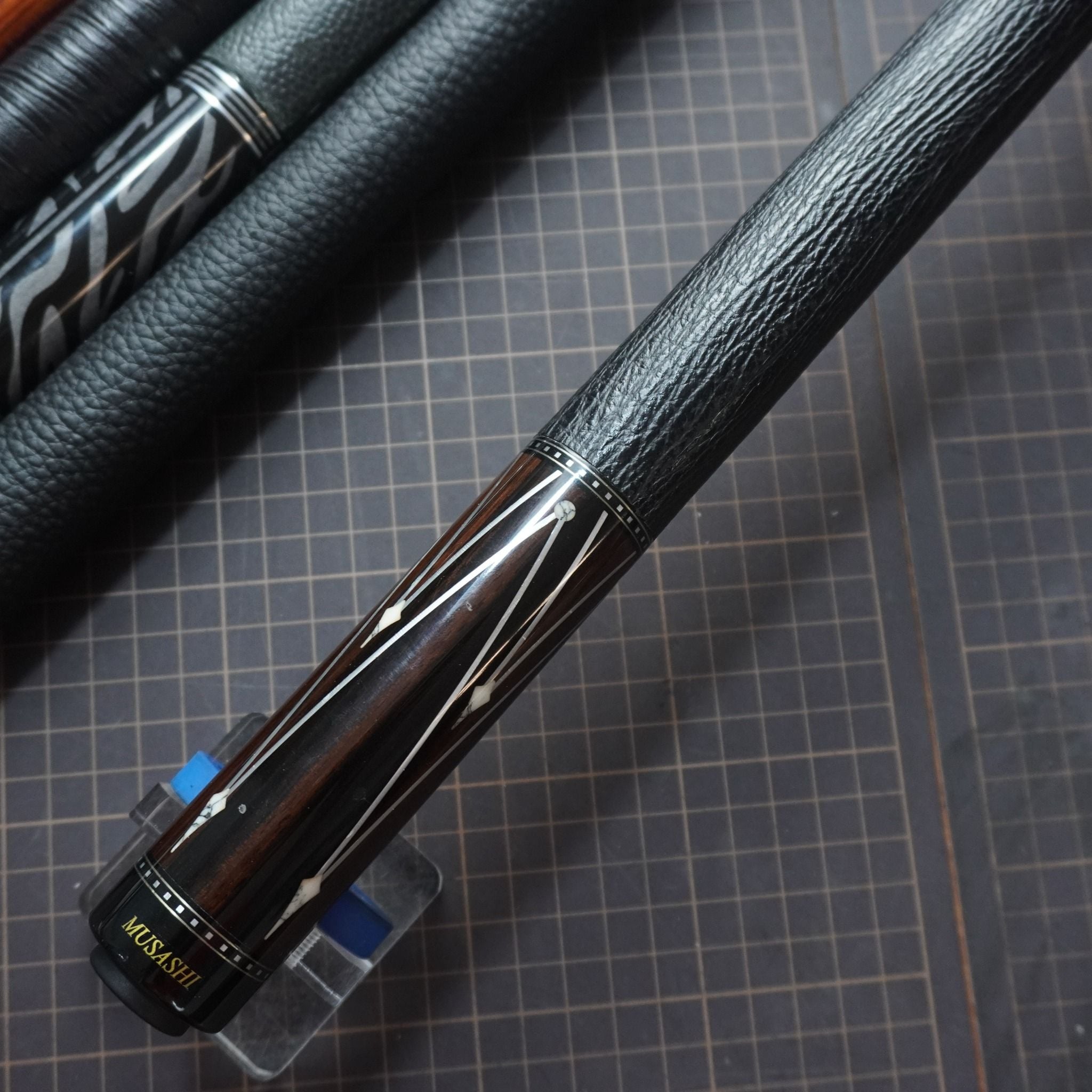 Bọc cơ da cá mập màu đen cho chuôi Musashi với chất da sát thủ đại dương tạo cảm giác an toàn và bền bỉ khi sử dụng