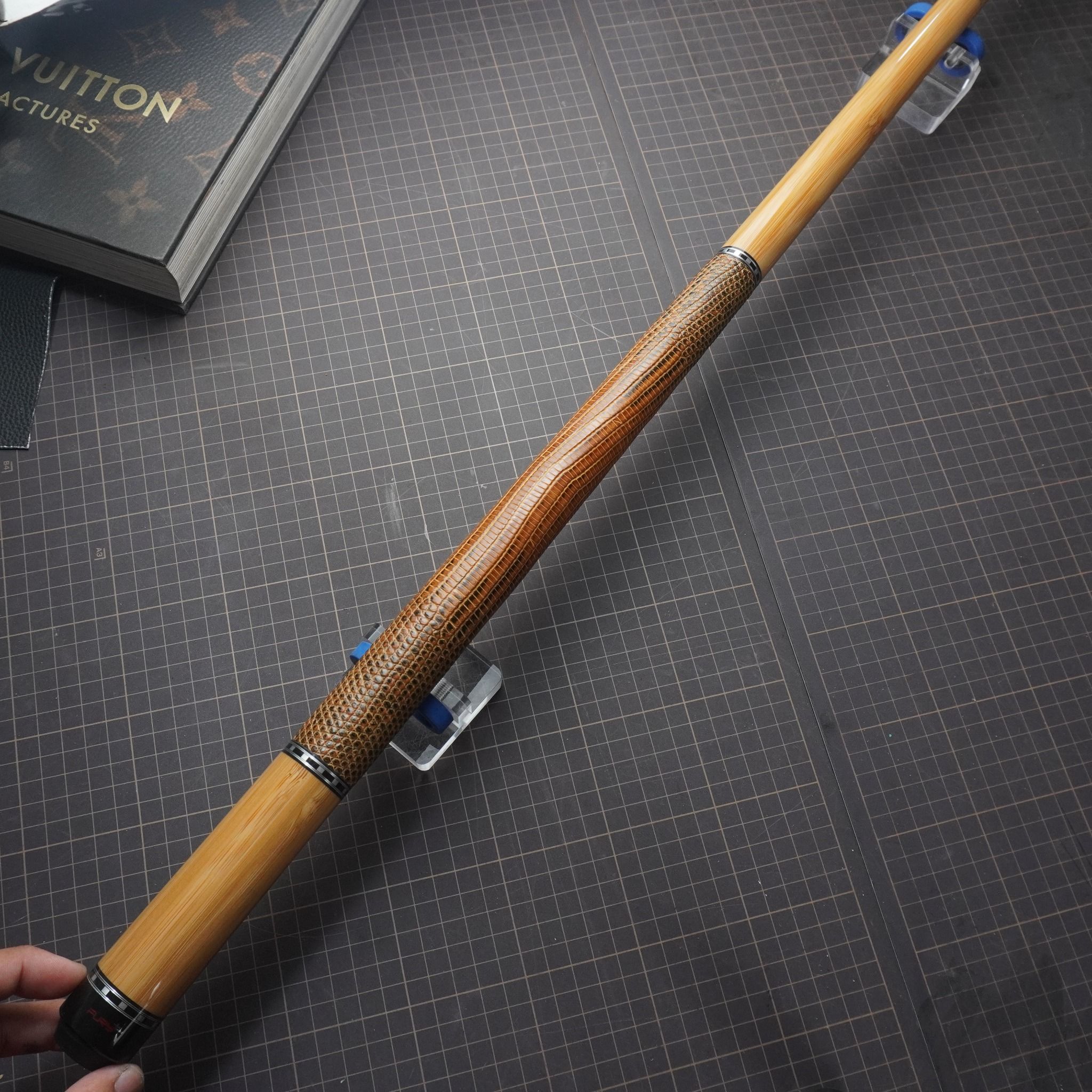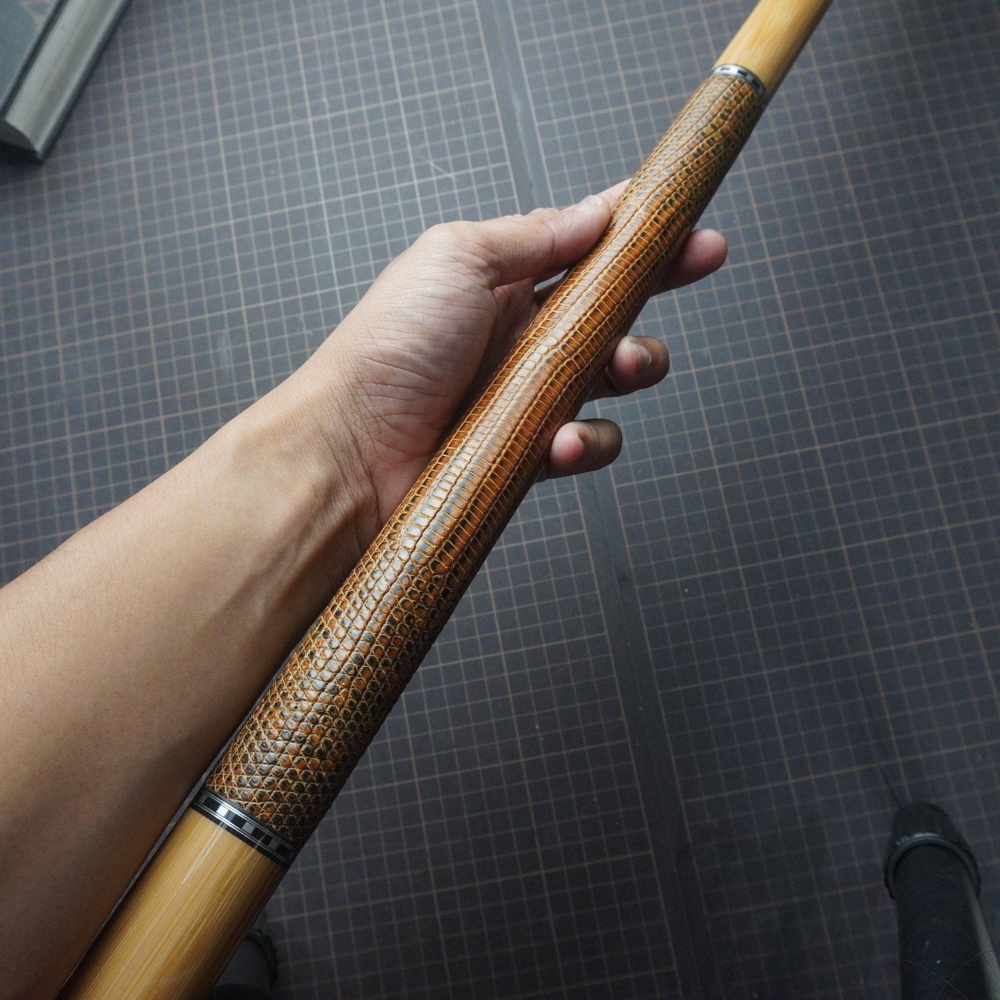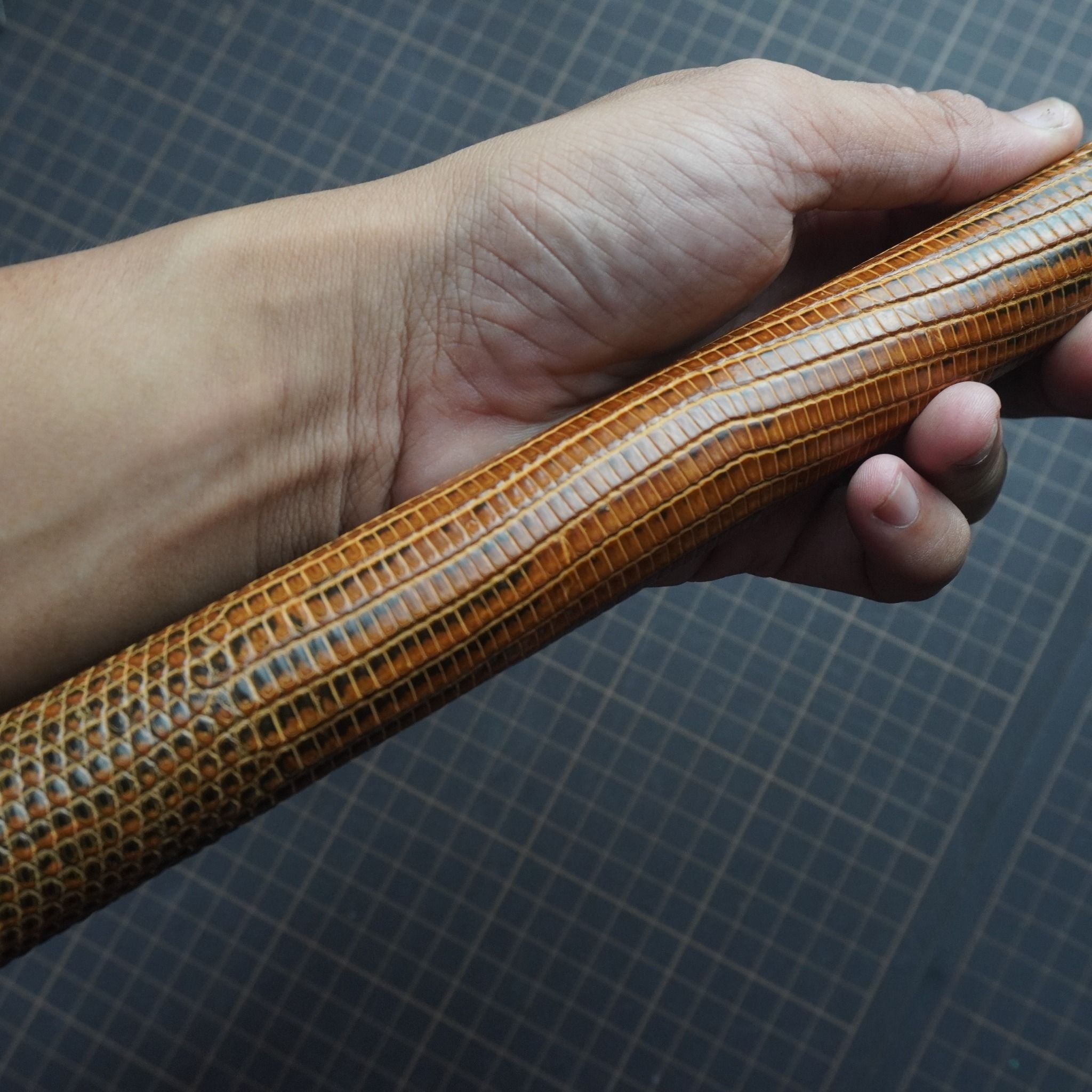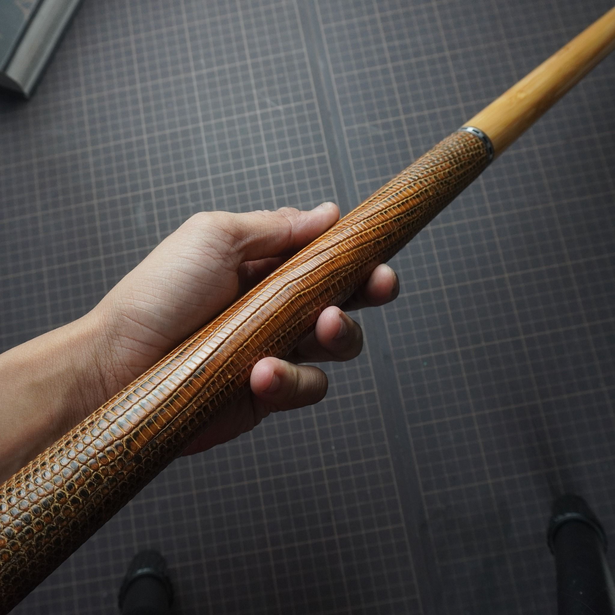 Bọc cơ da kì đà màu đỏ đen cho chuôi Fury plus, với chất da kì đà đen cam thể hiện sự huyền bí
