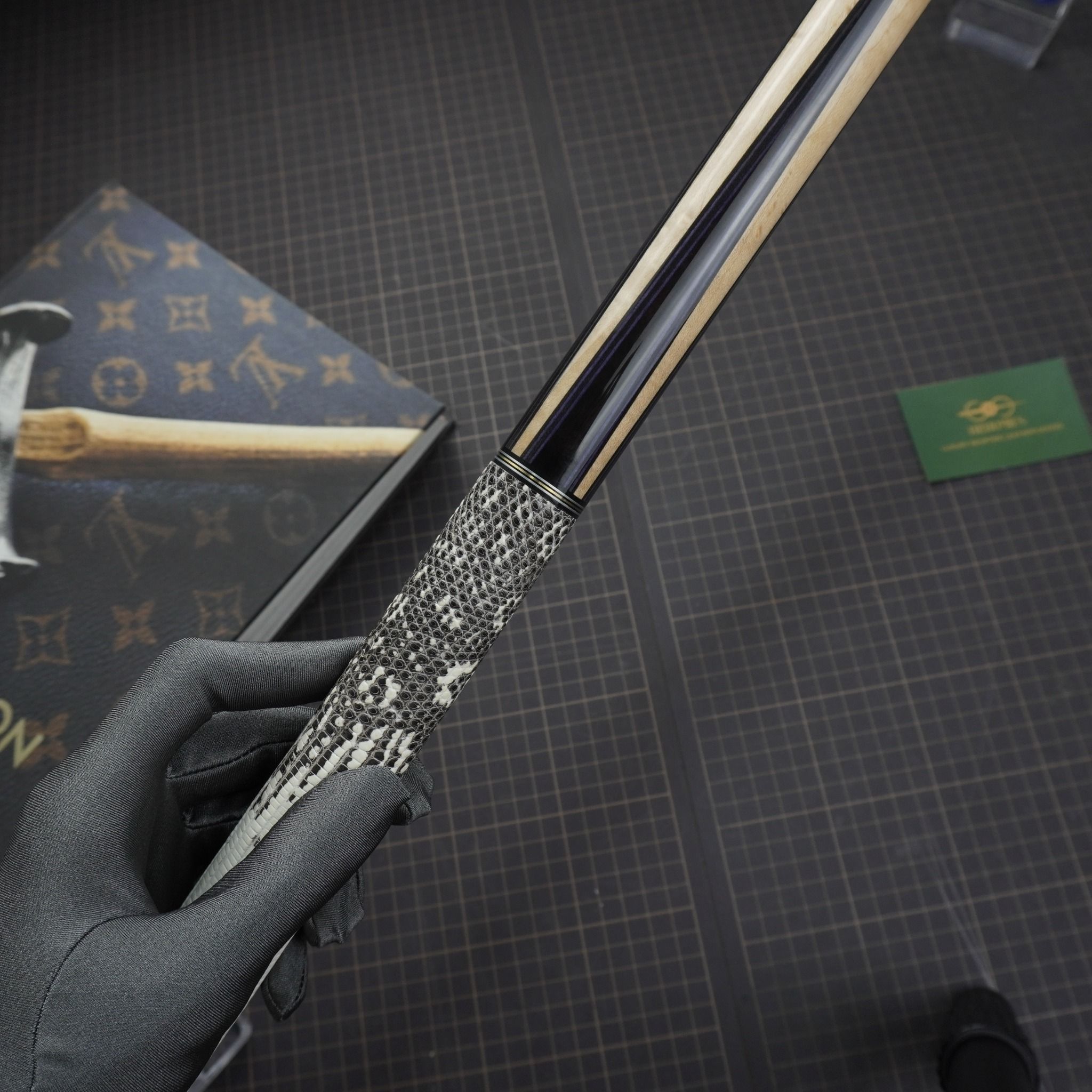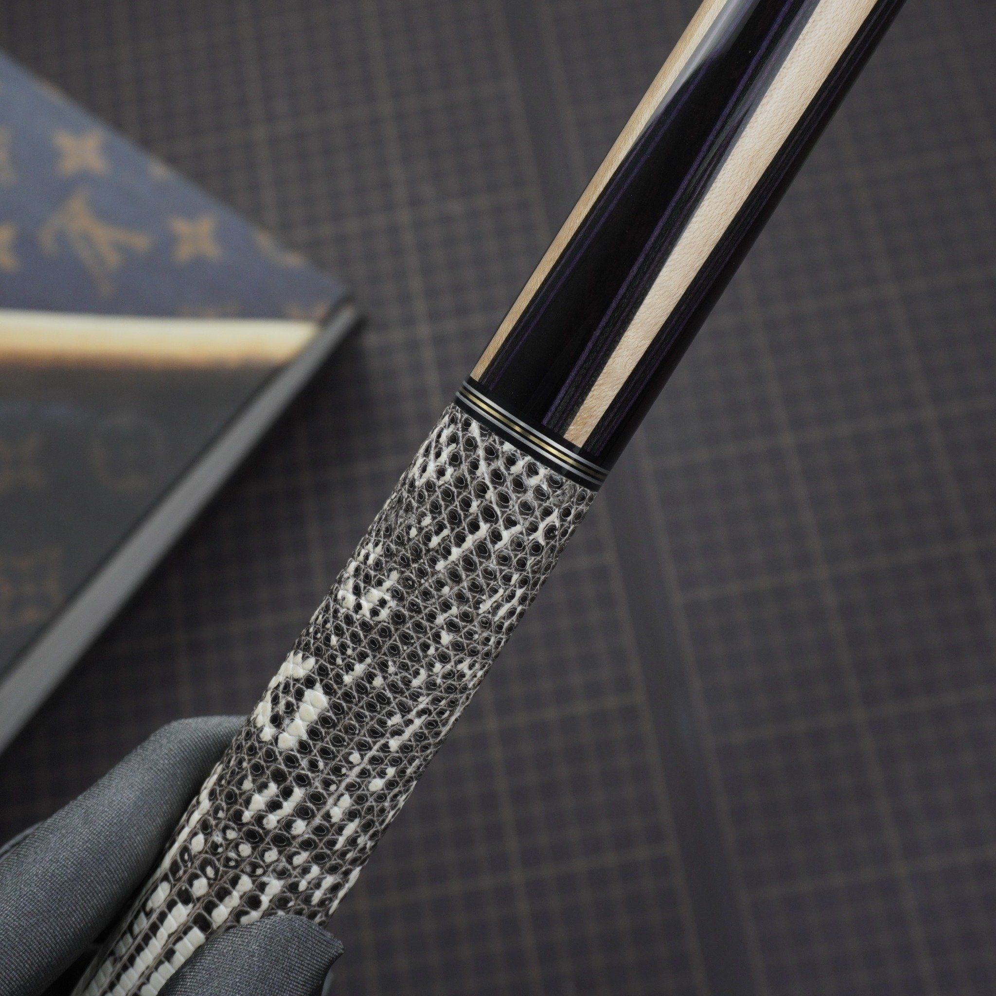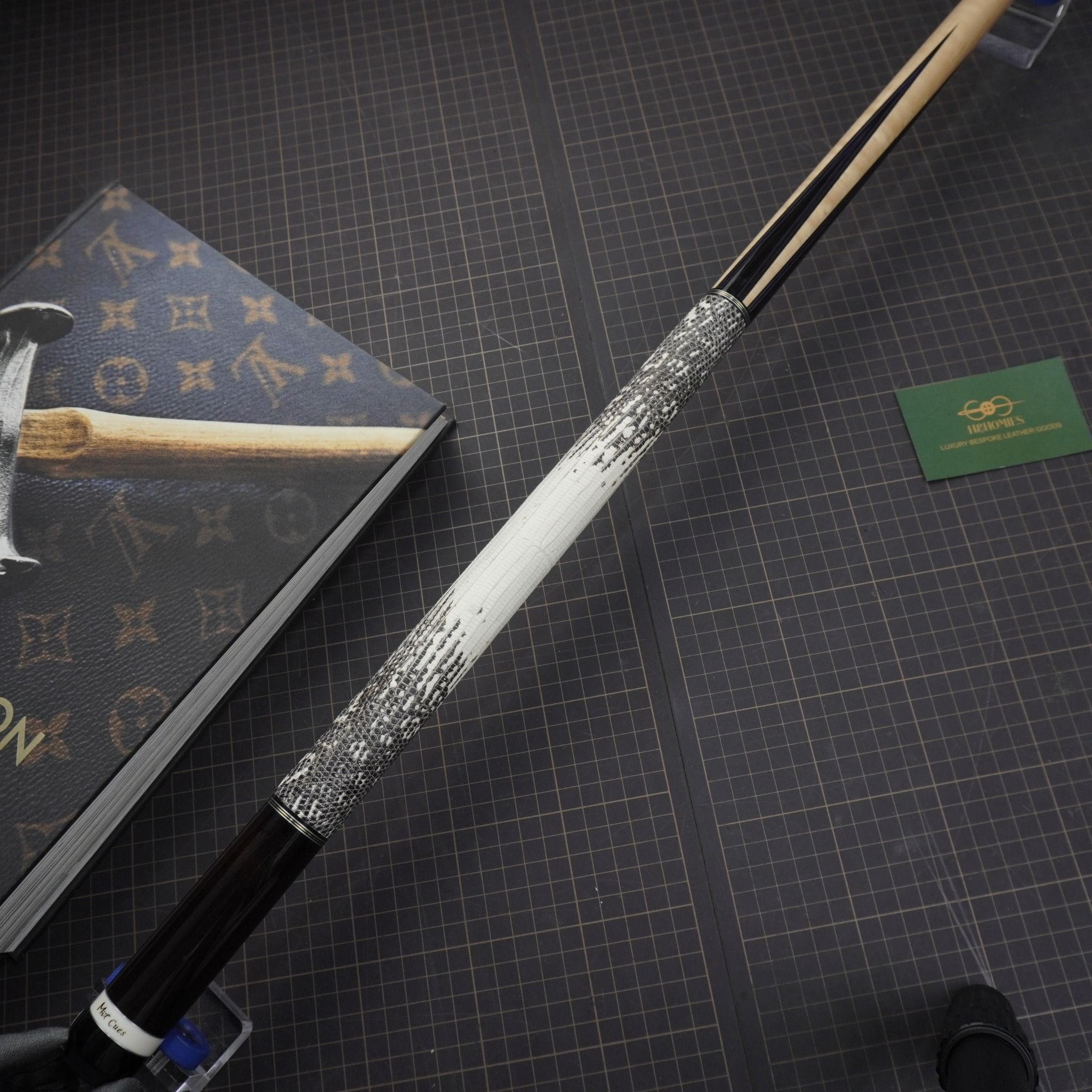 Bọc cơ da kì đà màu trắng đen cho chuôi Mit Cues với chất màu da tượng trưng cho sự hoàn hảo