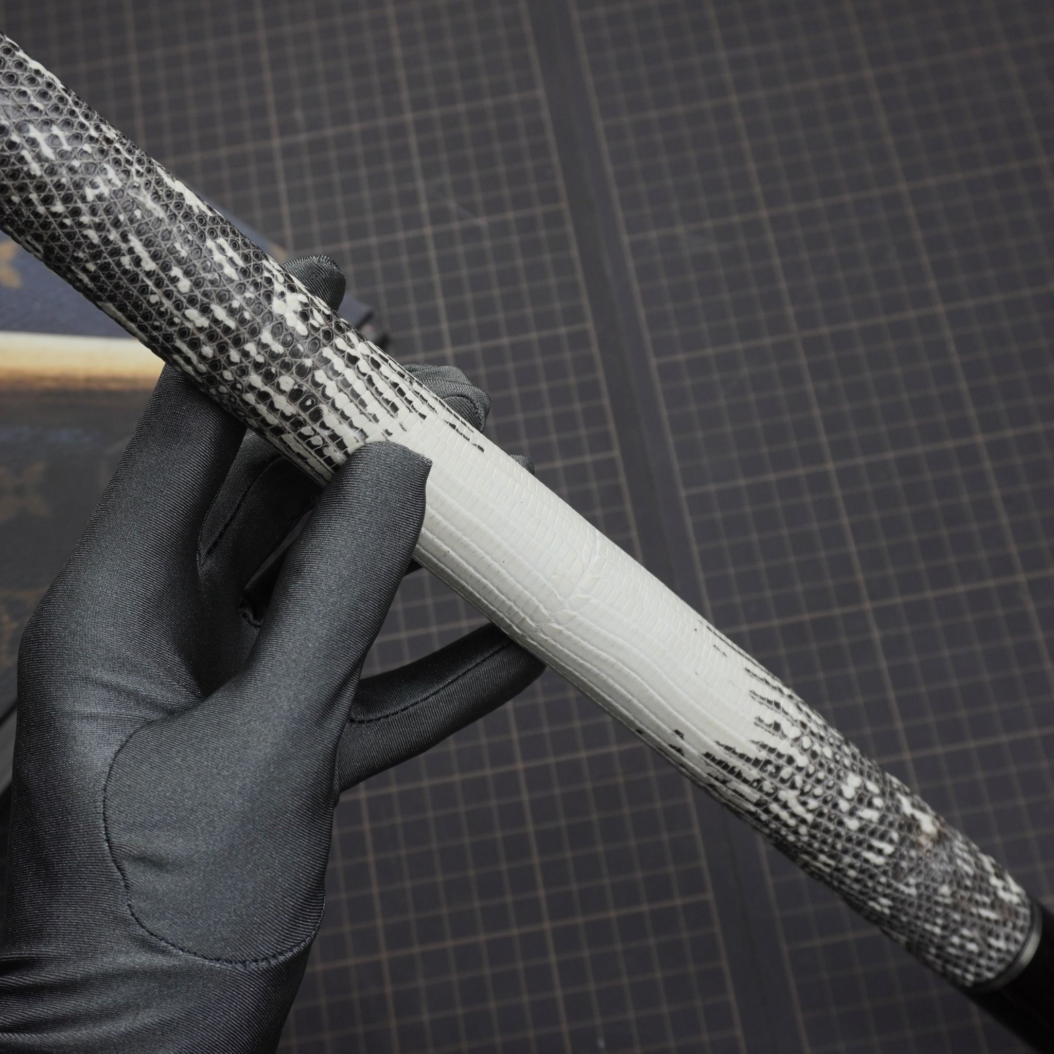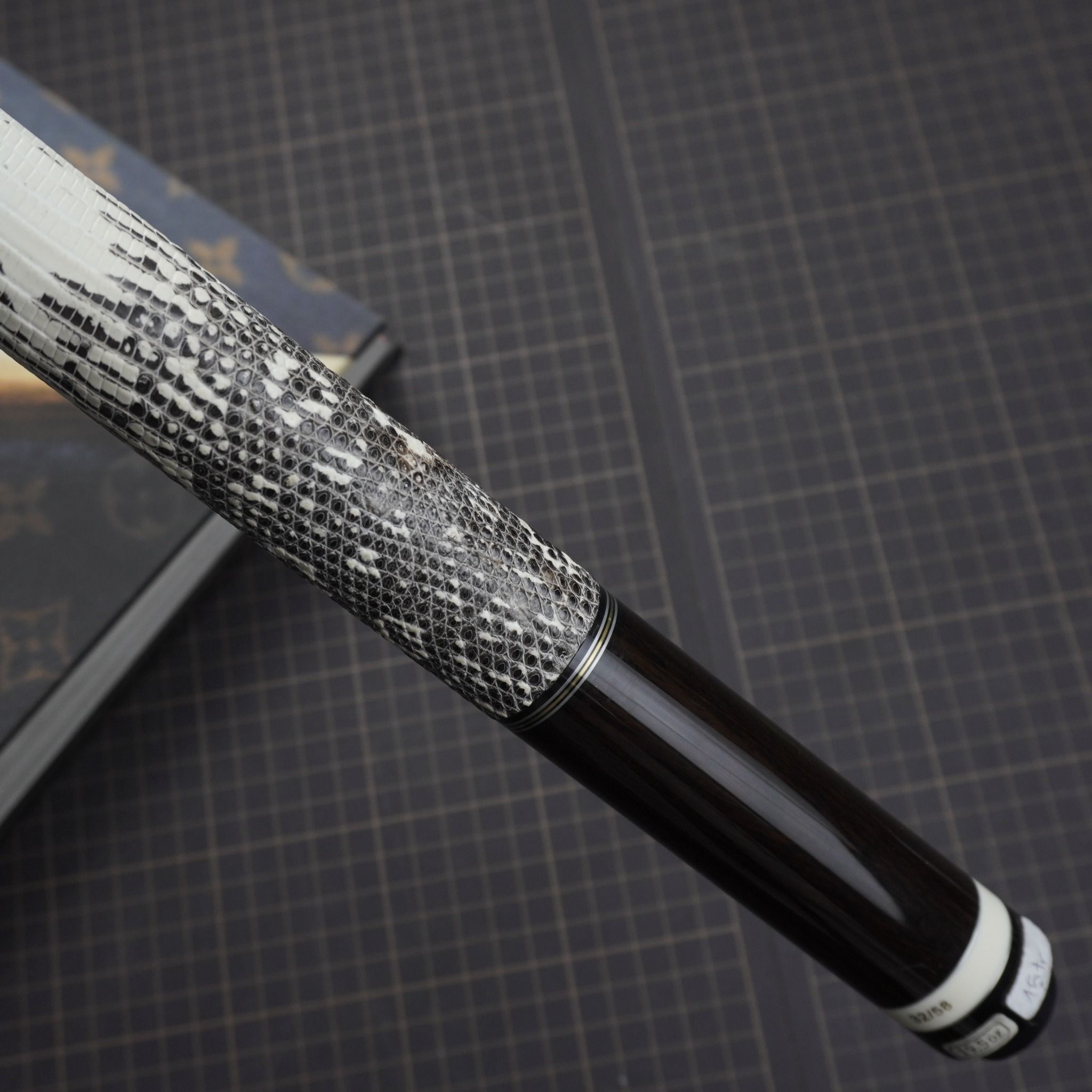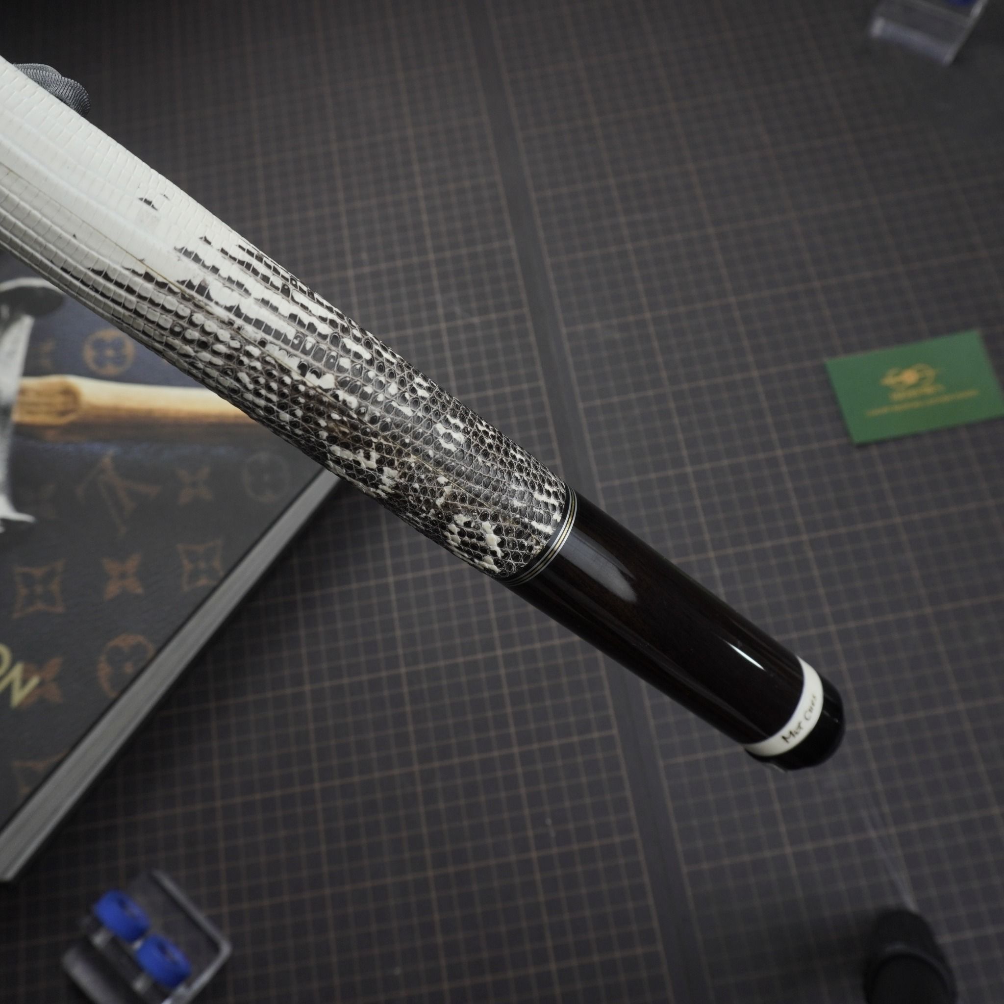 Bọc cơ da kì đà màu trắng đen cho chuôi Mit Cues với chất màu da tượng trưng cho sự hoàn hảo