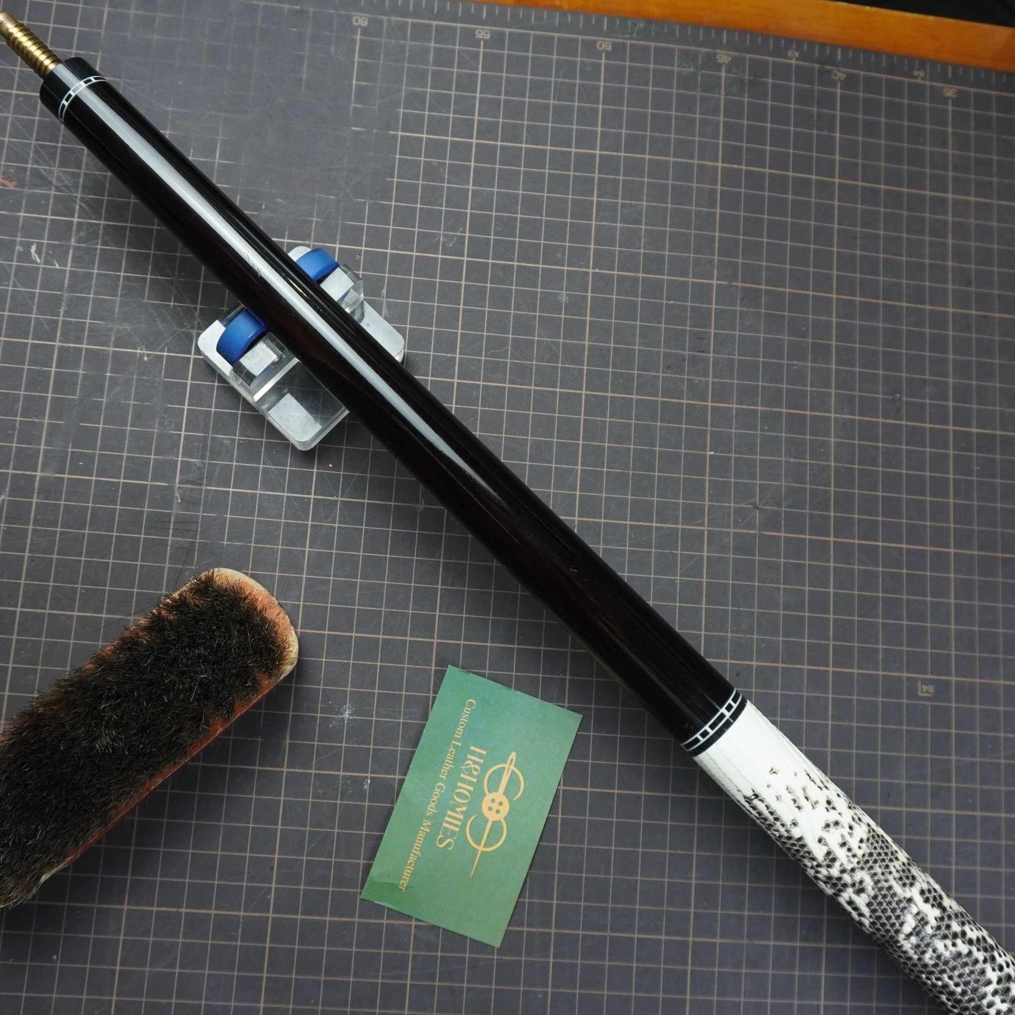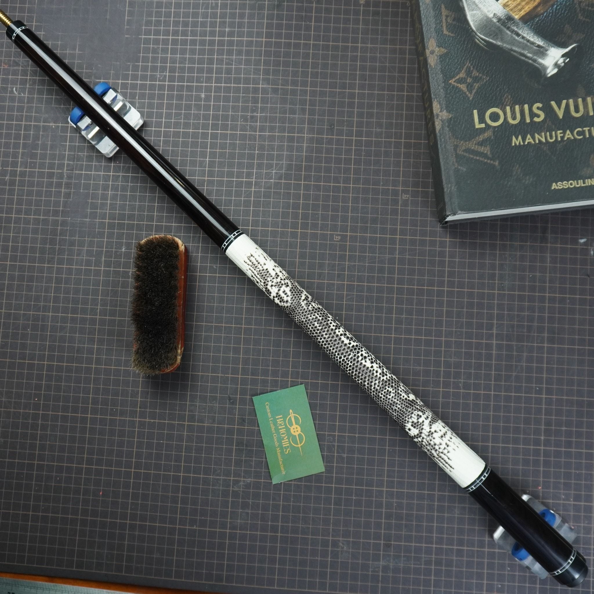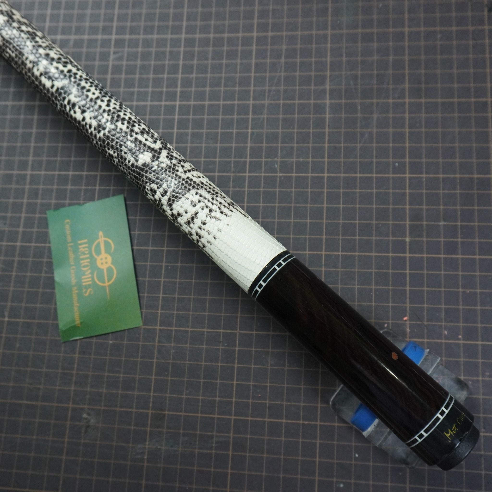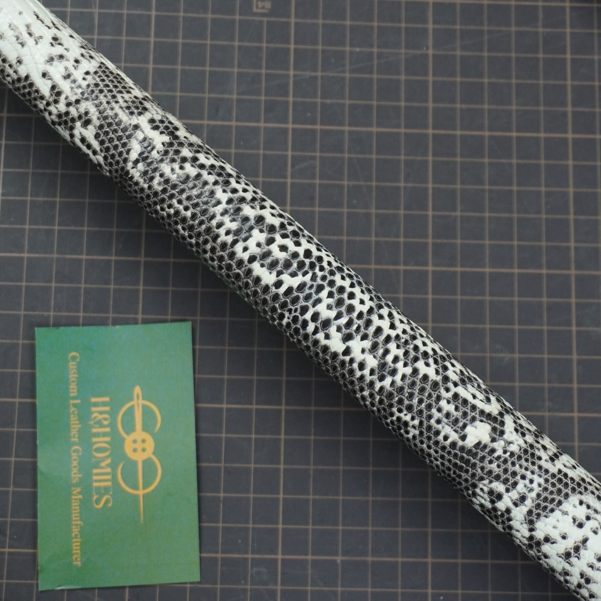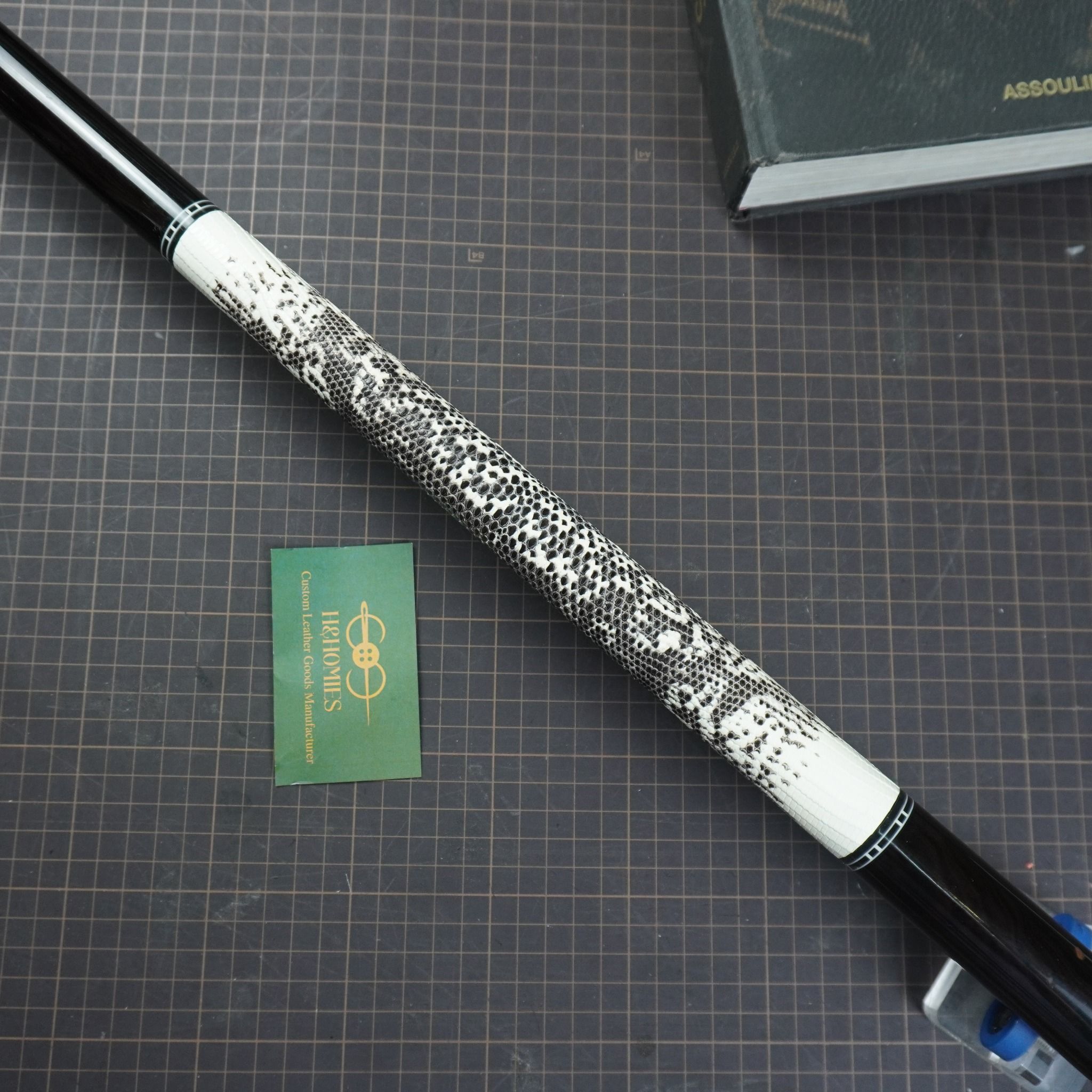 Bọc cơ da kỳ đà màu trắng đen cho chuôi Mit MC3-002, với chất da kỳ đà trắng đen thể hiện sự huyền bí