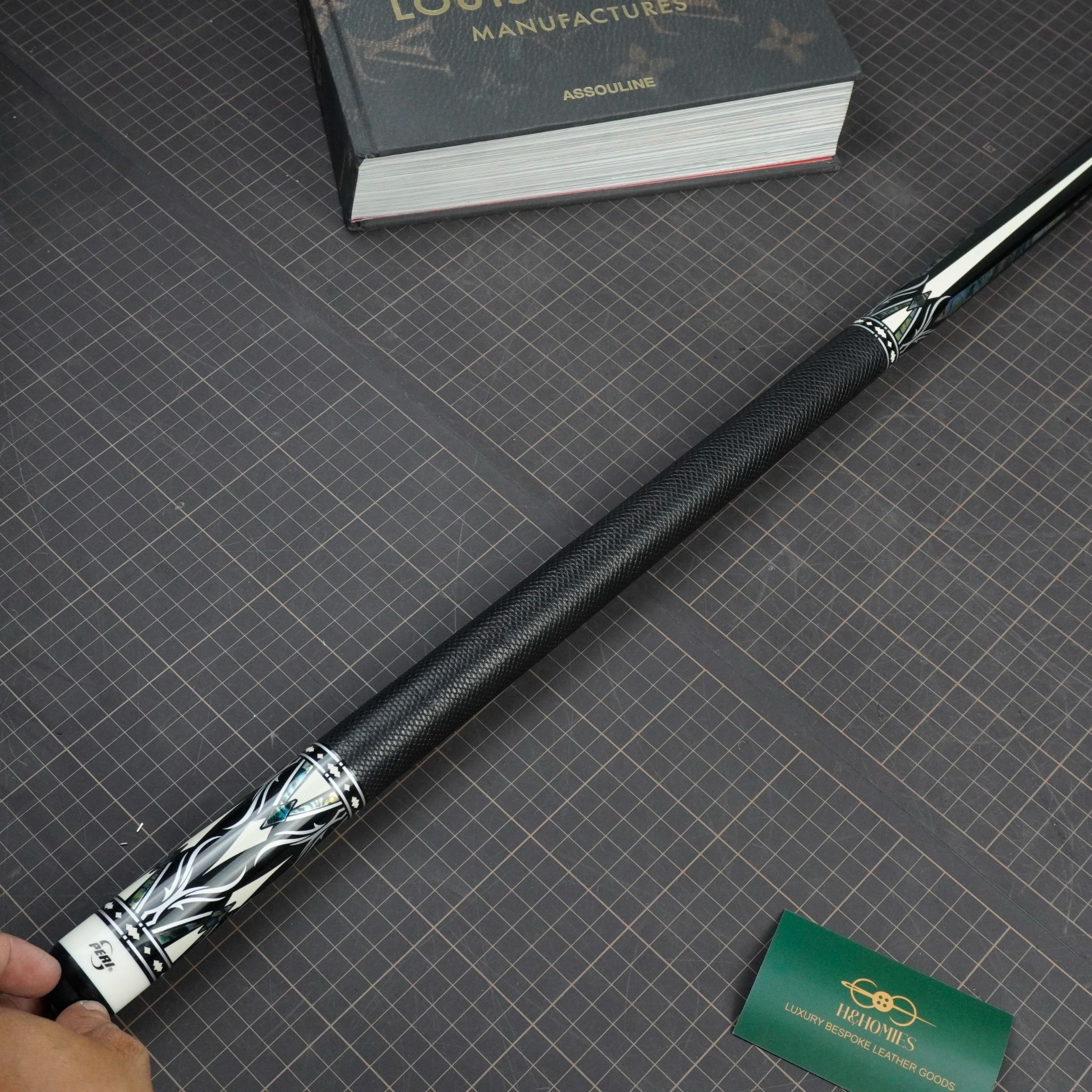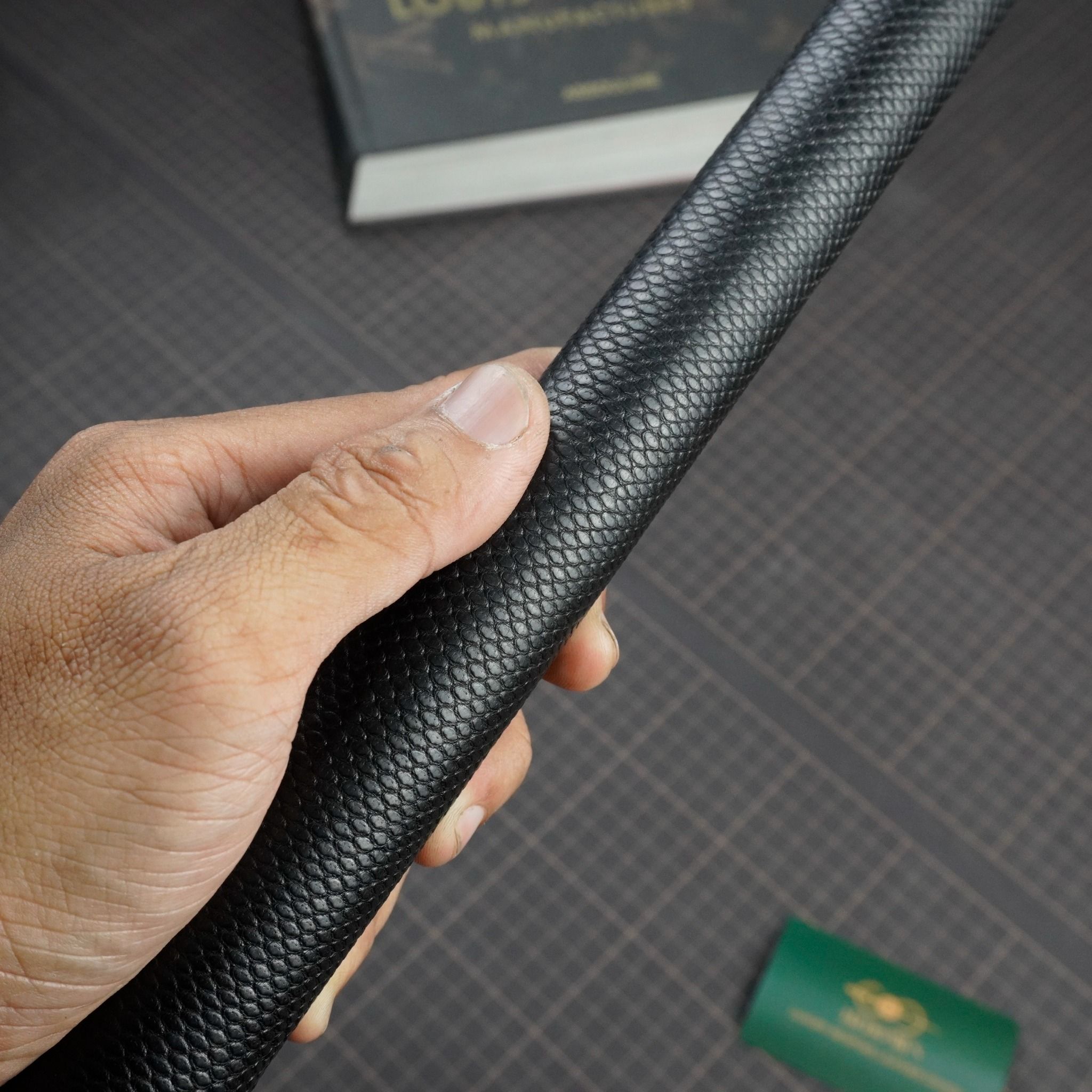 Bọc cơ da rắn Karung màu đen cho chuôi Peri, với chất da Karung được gia công thủ công thành thạo từ da rắn với vẻ đẹp lạ kì, để lại một ấn tượng không thê nào quên