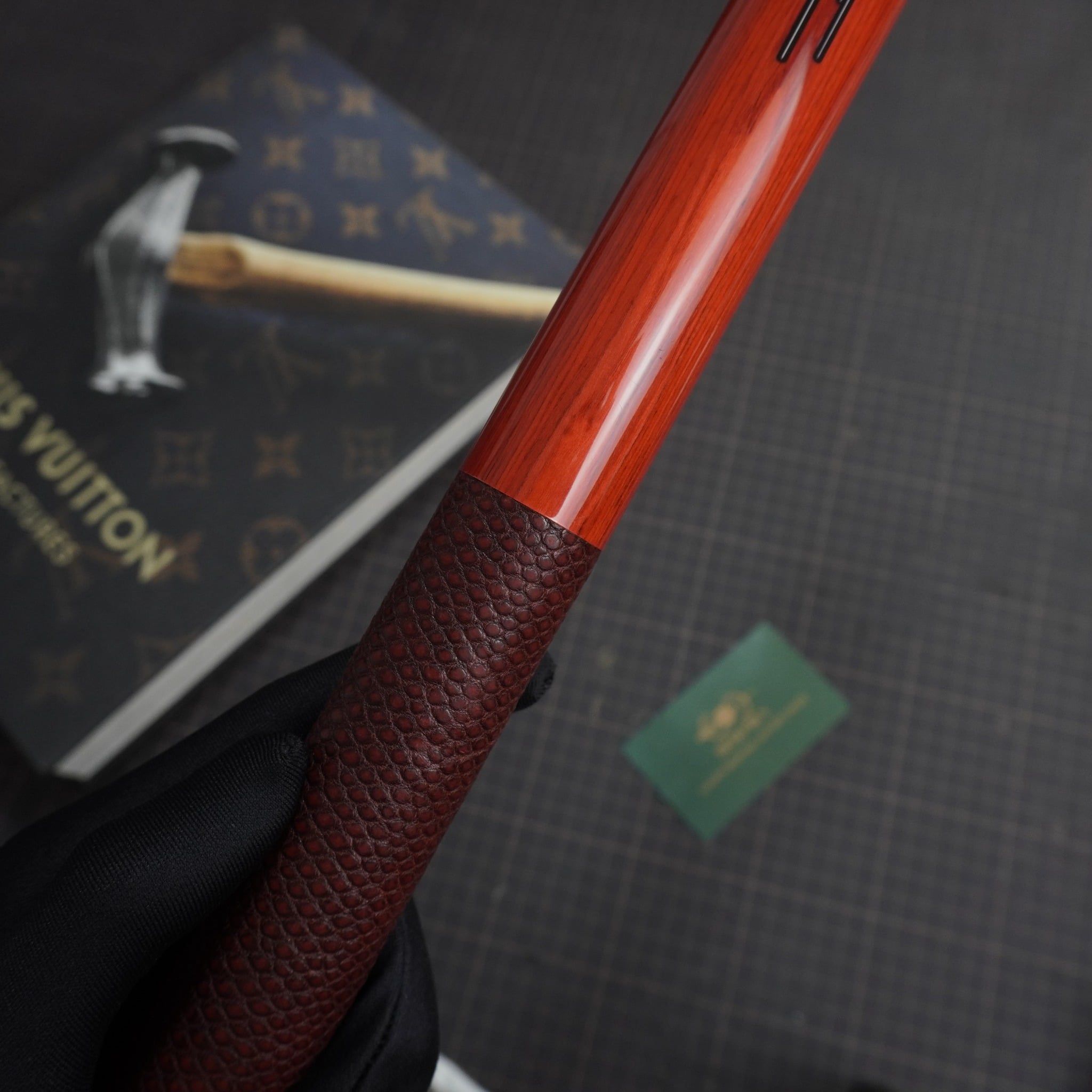 Bọc cơ da rắn Karung màu đỏ đô cho chuôi Custom, với chất da Karung được gia công thủ công thành thạo từ da rắn với vẻ đẹp lạ kì, để lại một ấn tượng không thê nào quên