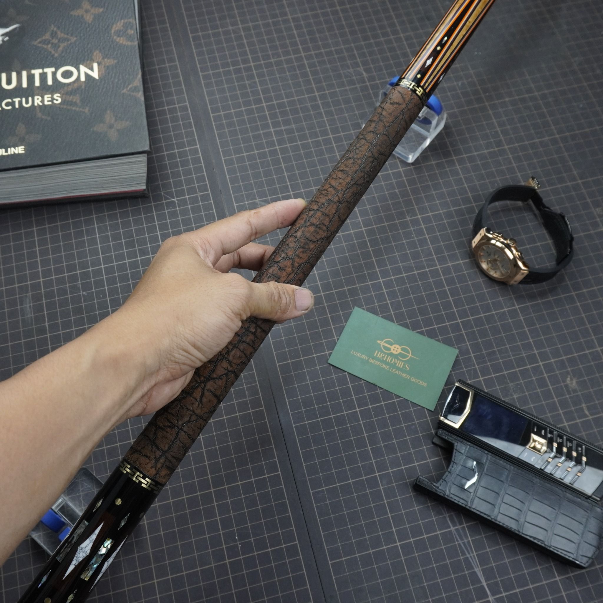 - Chất liệu: Da voi thật 100%