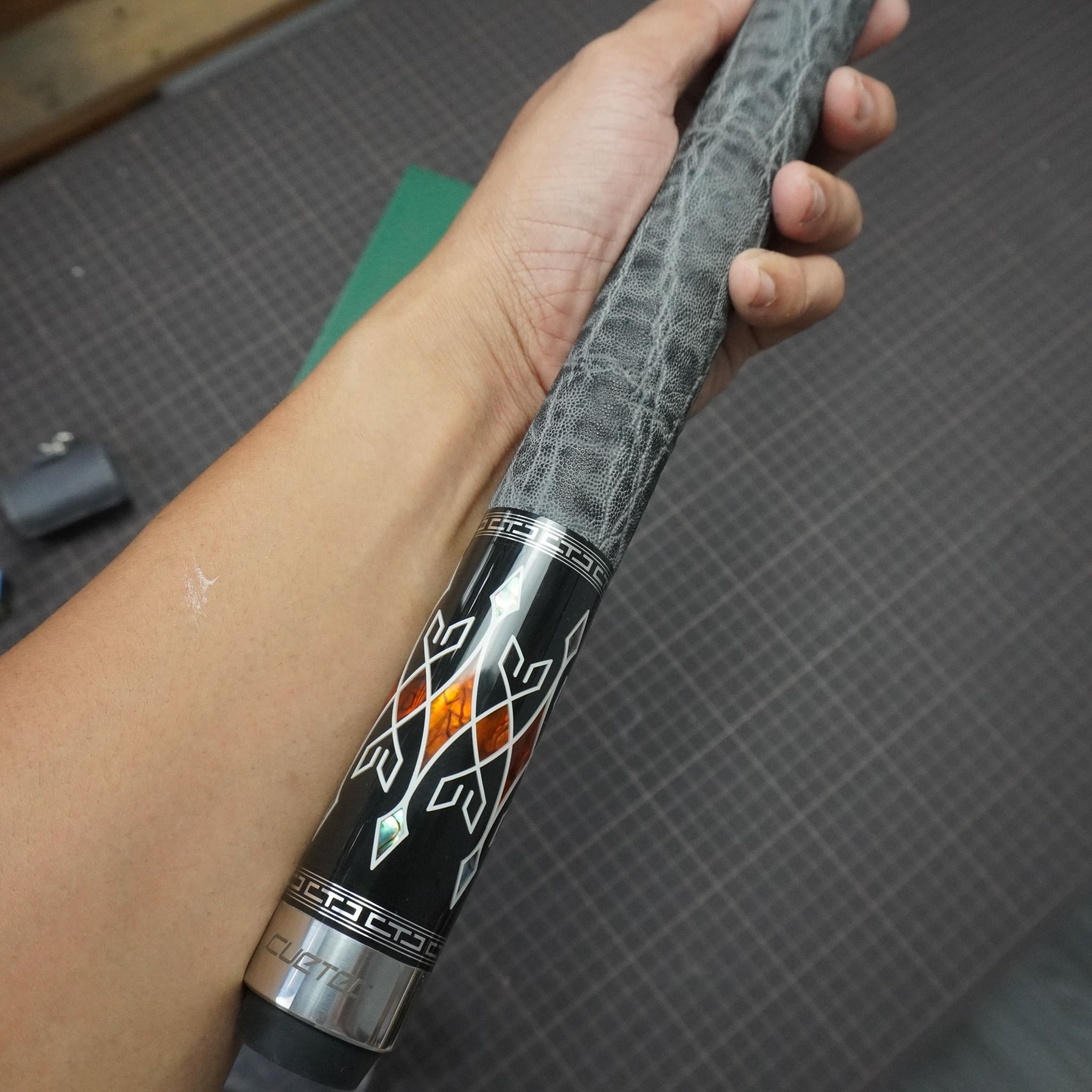 Bọc cơ bida màu xám với chất da mạnh mẽ