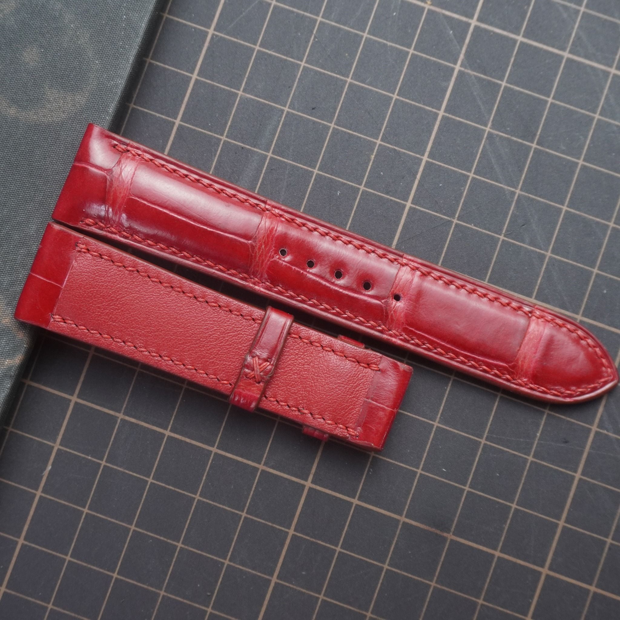 Dây đồng hồ handmade cao cấp - Chất liệu: cá sấu alligator và da lót zermat tất cả đều nhập khẩu châu Âu.