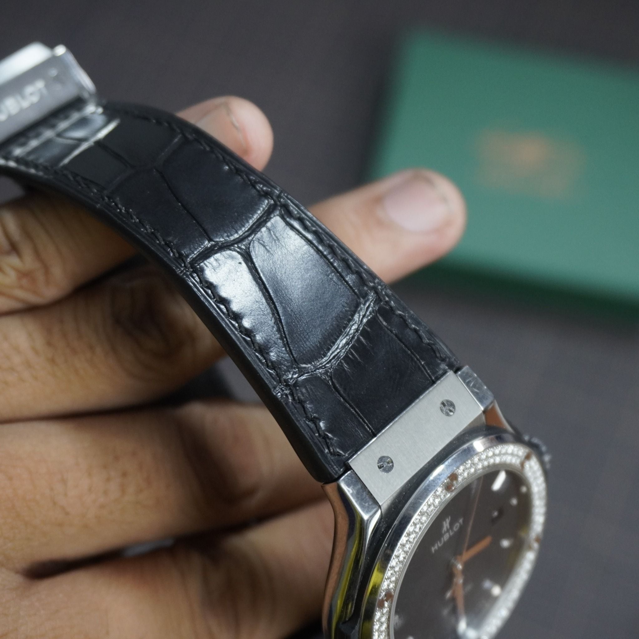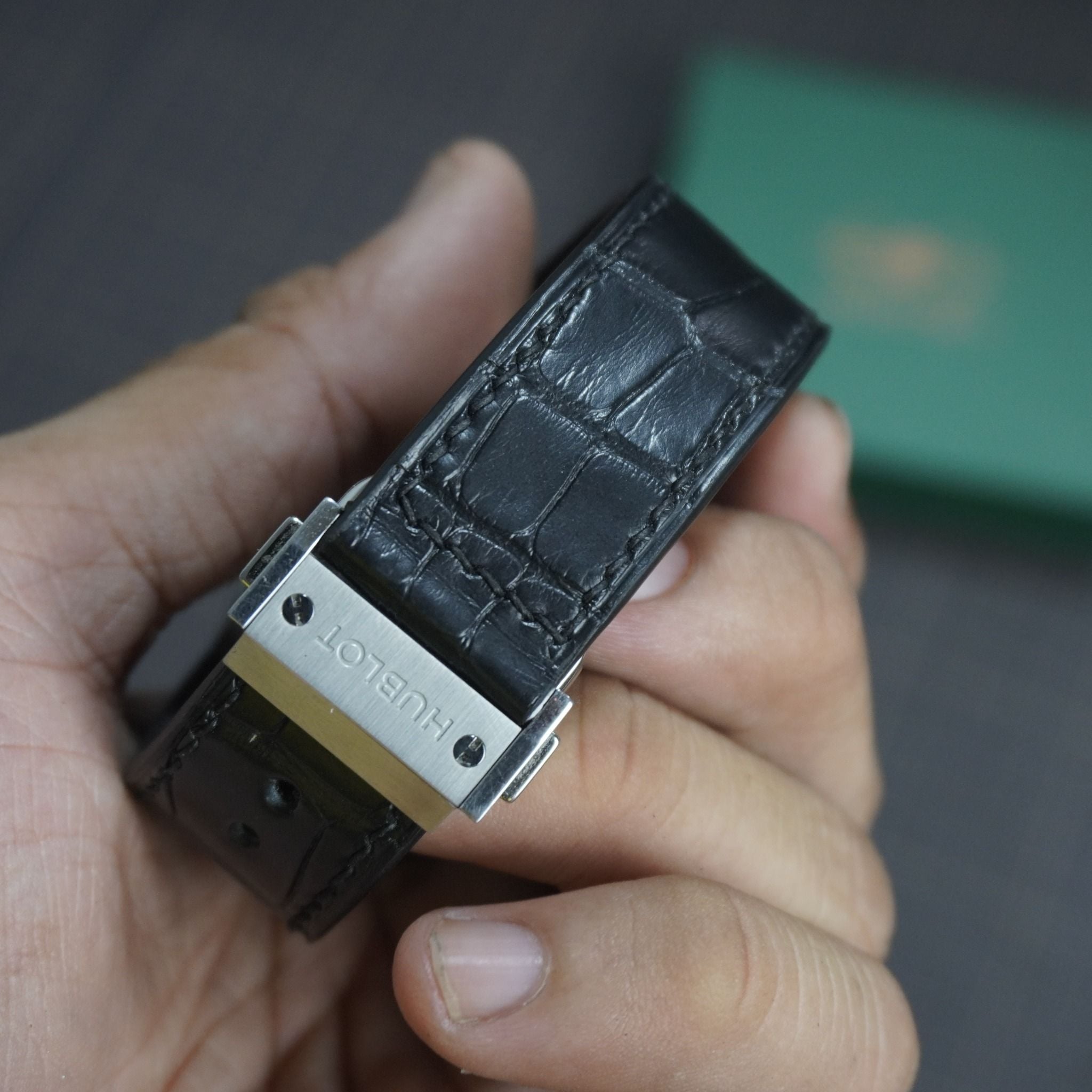 Dây cá sấu Alligator màu đen cho đồng hồ Hublot