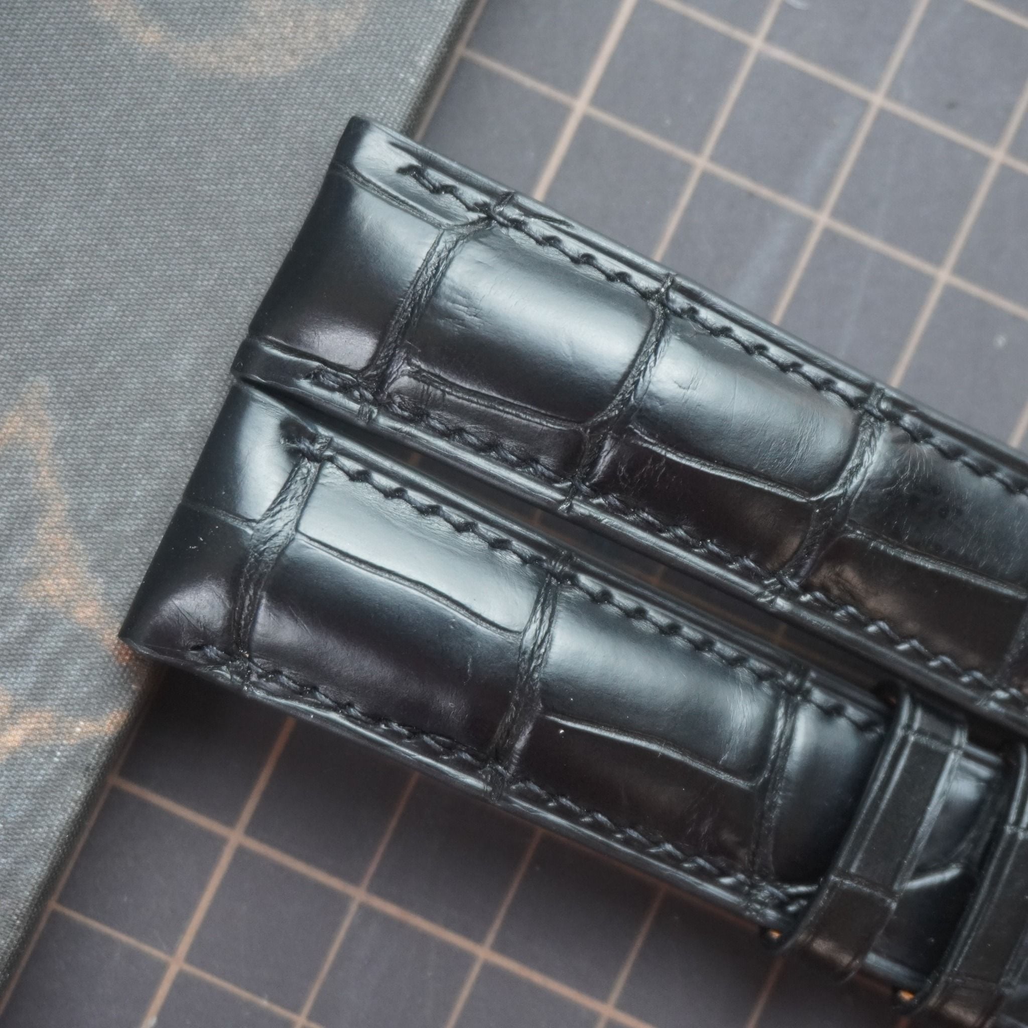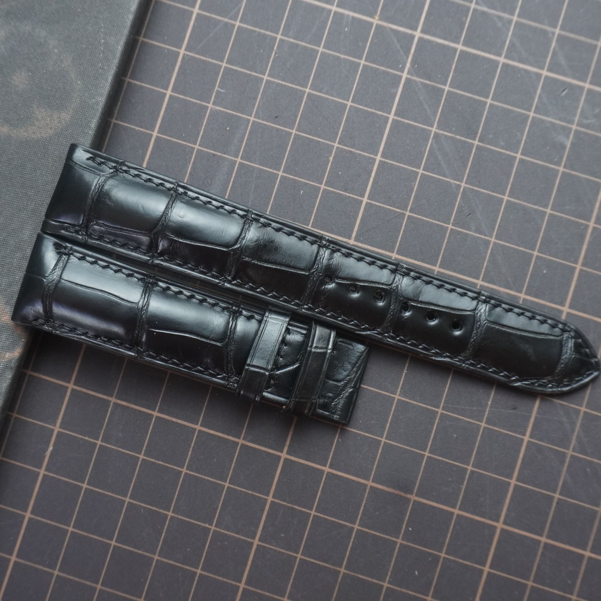 Dây đồng hồ handmade cao cấp - Chất liệu: cá sấu alligator và da lót zermat tất cả đều nhập khẩu châu Âu.