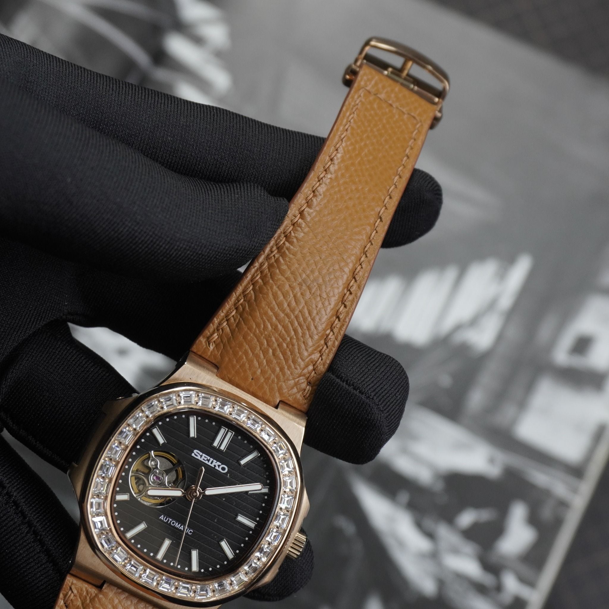 Dây đồng hồ handmade cao cấp - Chất liệu: da Epsom và da lót zermat tất cả đều nhập khẩu châu Âu.
