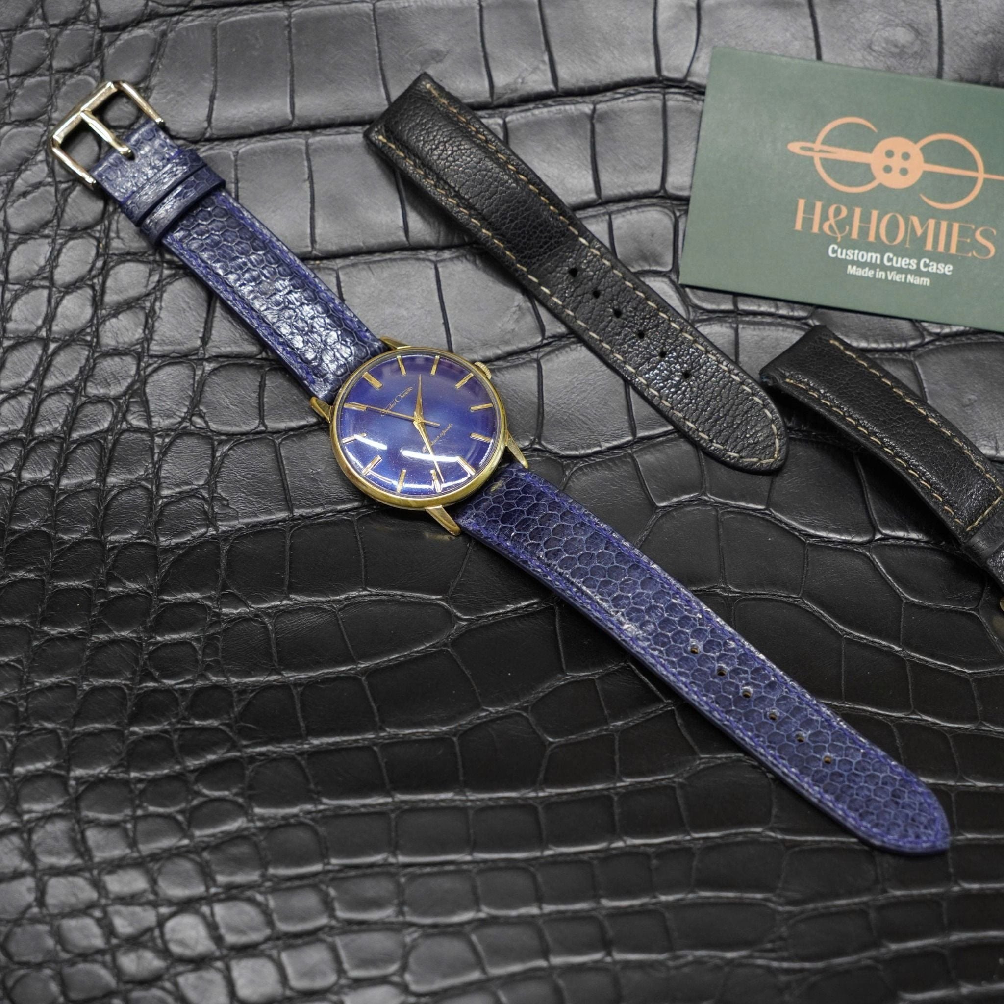 Dây da rắn xanh navy (Size:20-18mm)  Dây da rắn xanh navy (Size:20-18mm)