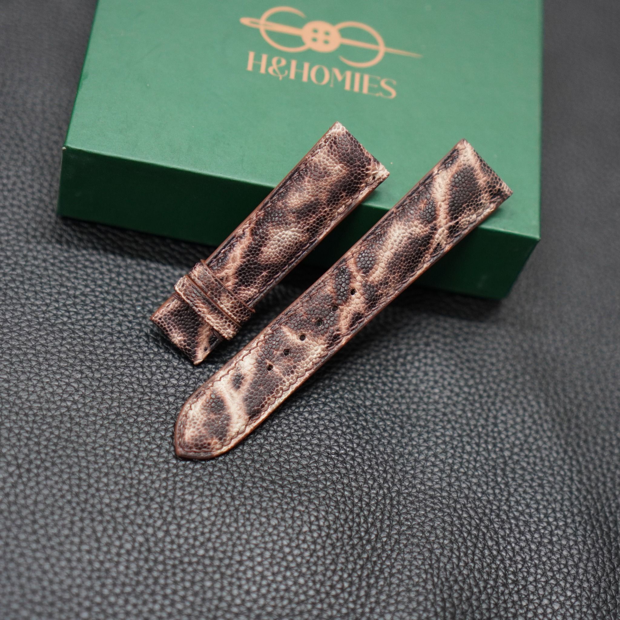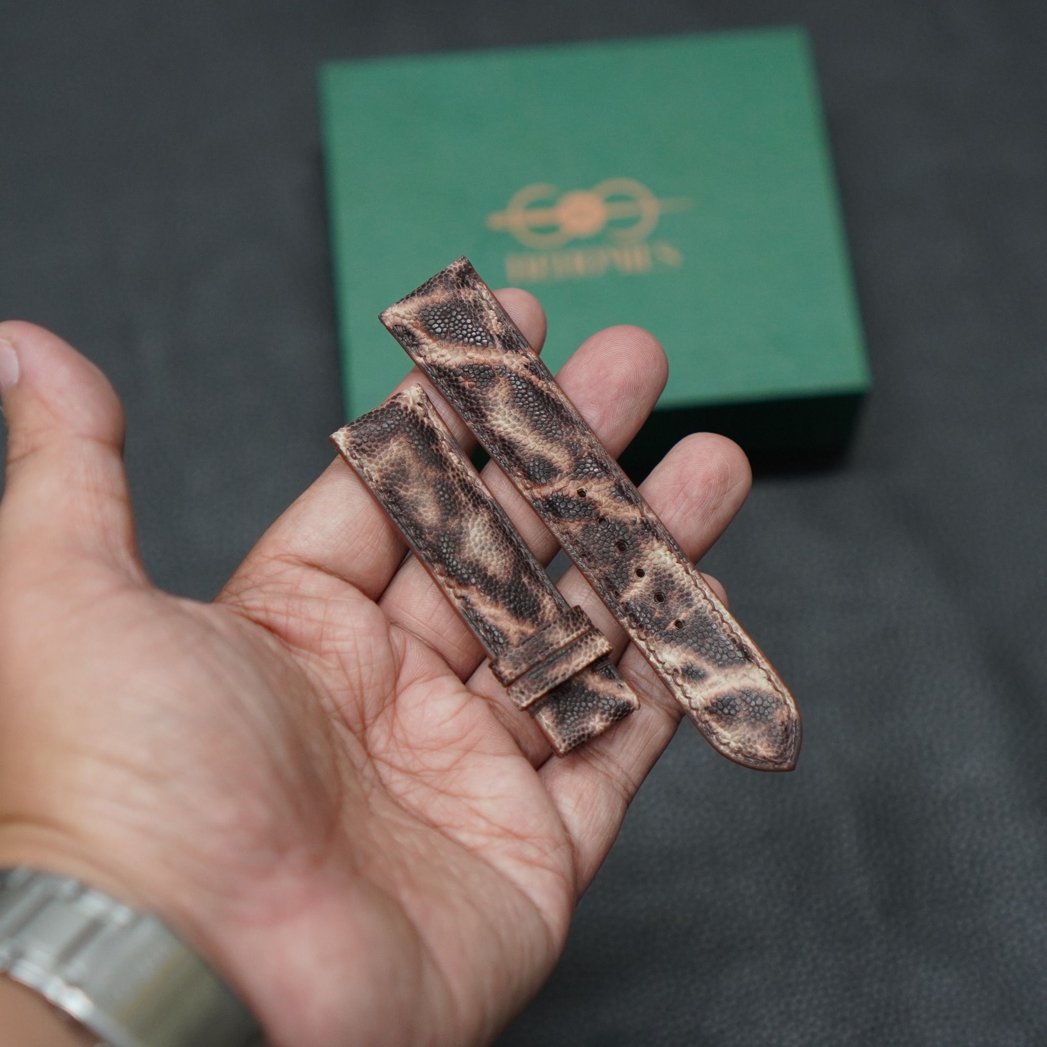 Dây đồng hồ handmade cao cấp - Chất liệu: da voi cao cấp và da lót zermat tất cả đều nhập khẩu châu Âu.