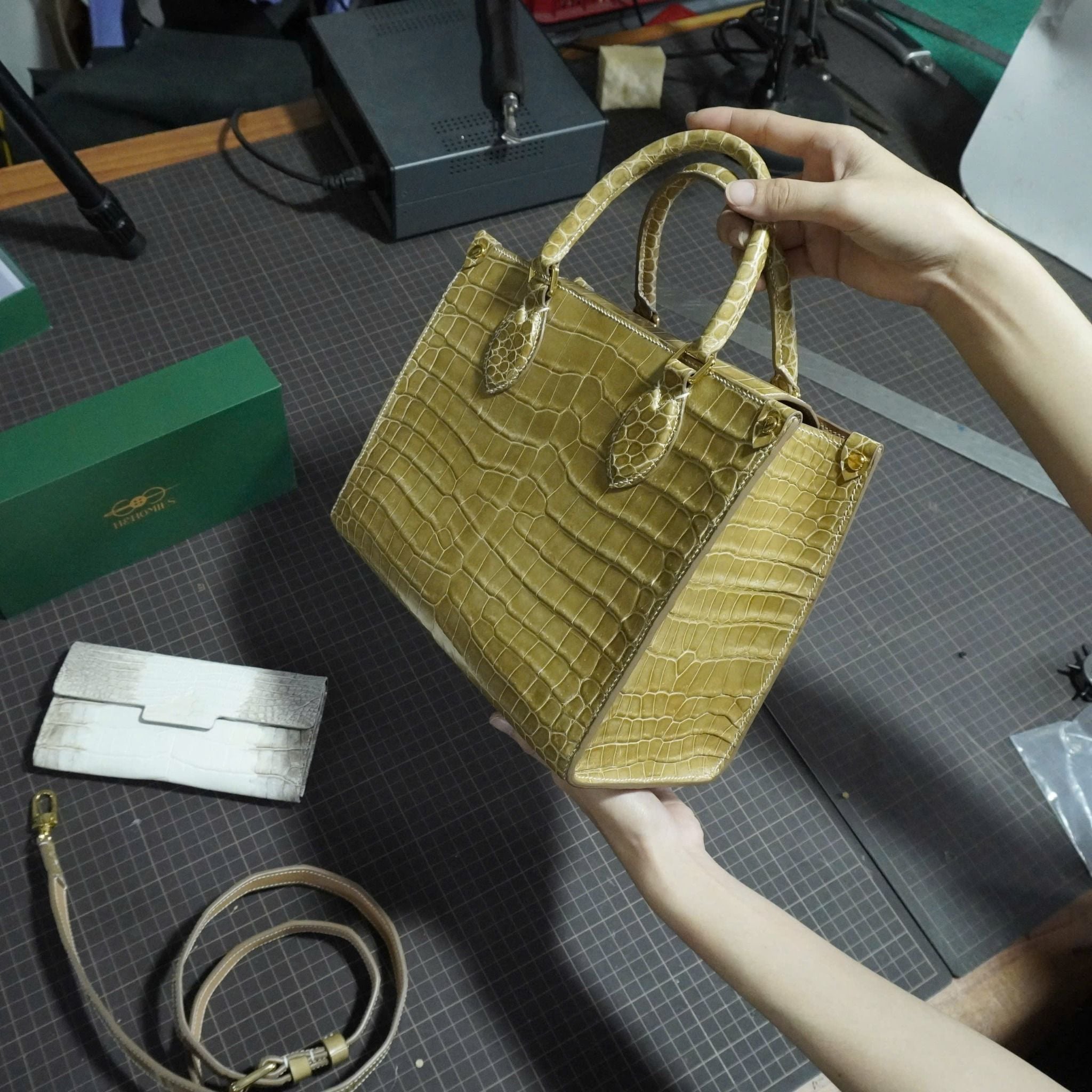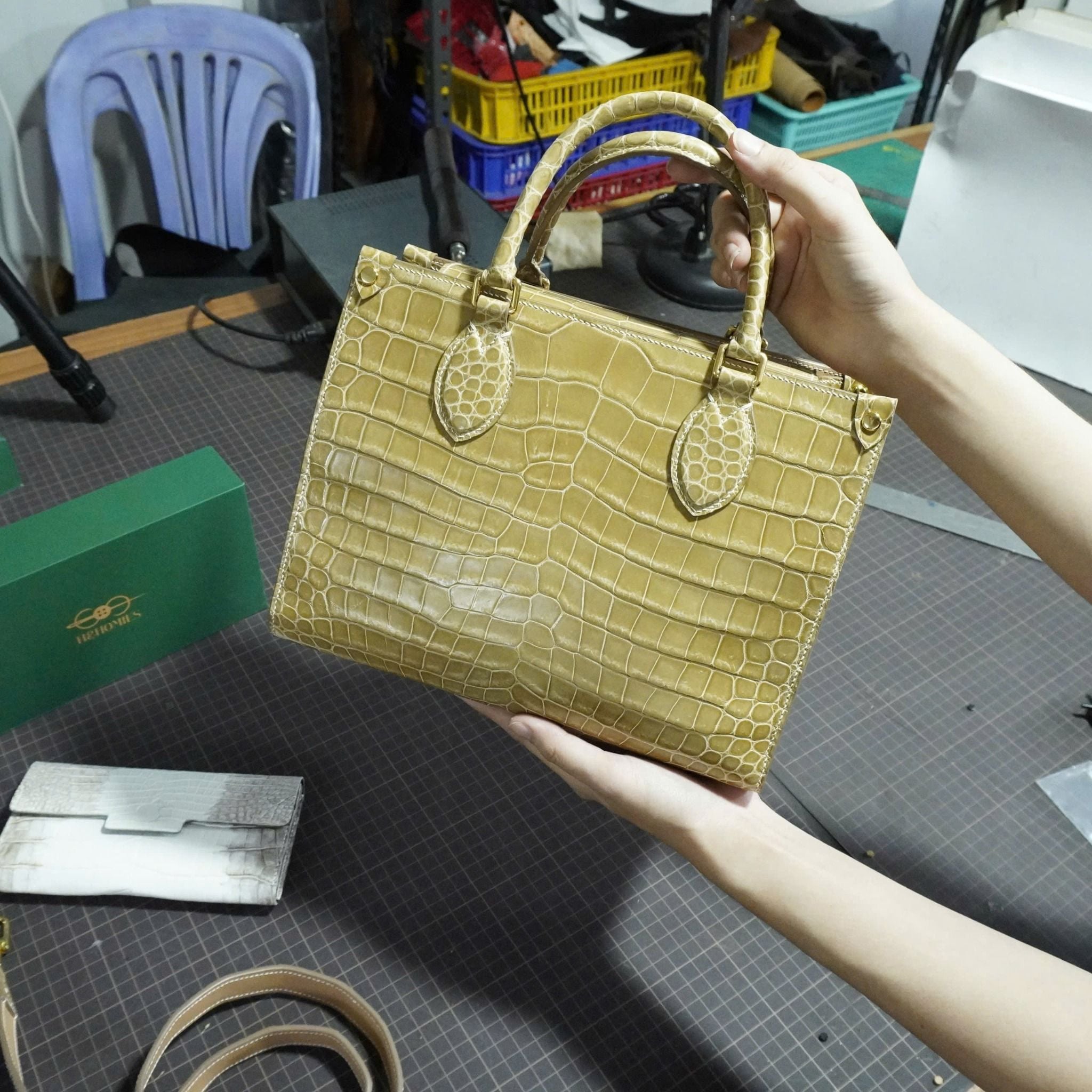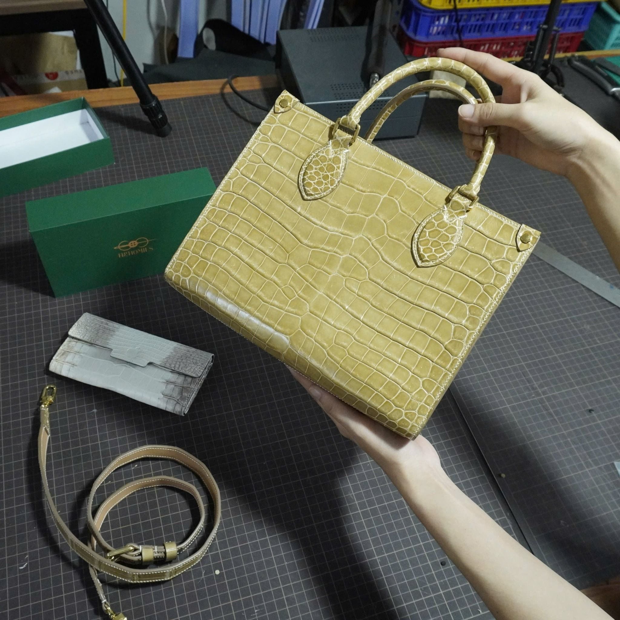 Túi được làm từ 2 con cá sấu Alligator nhập Pháp cao cấp với vân da sang trọng, sắc xảo. Sản phẩm mang lại sự sang trọng, quý phái cho khách hàng sử dụng.