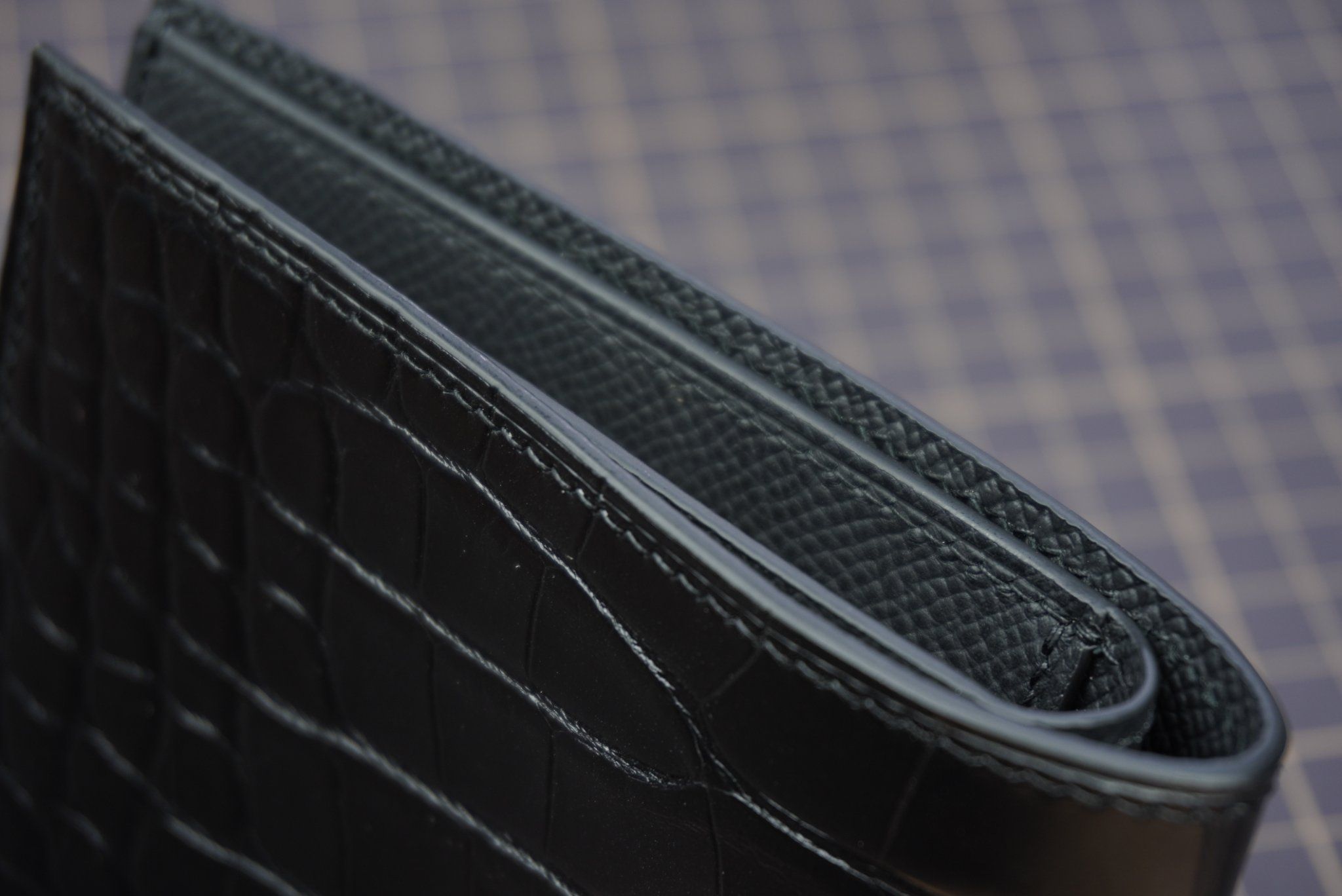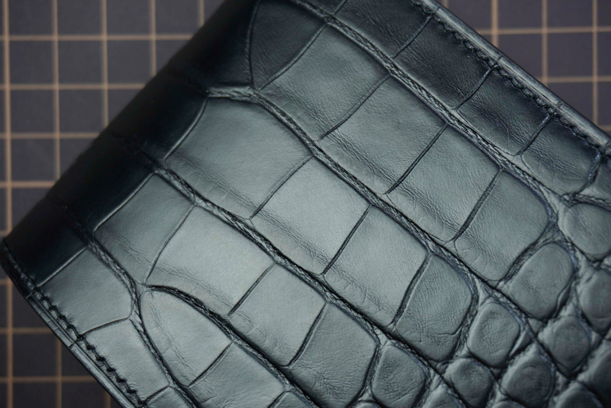 - Chất liệu: da cá sấu Alligator nhập Pháp (vân bụng).